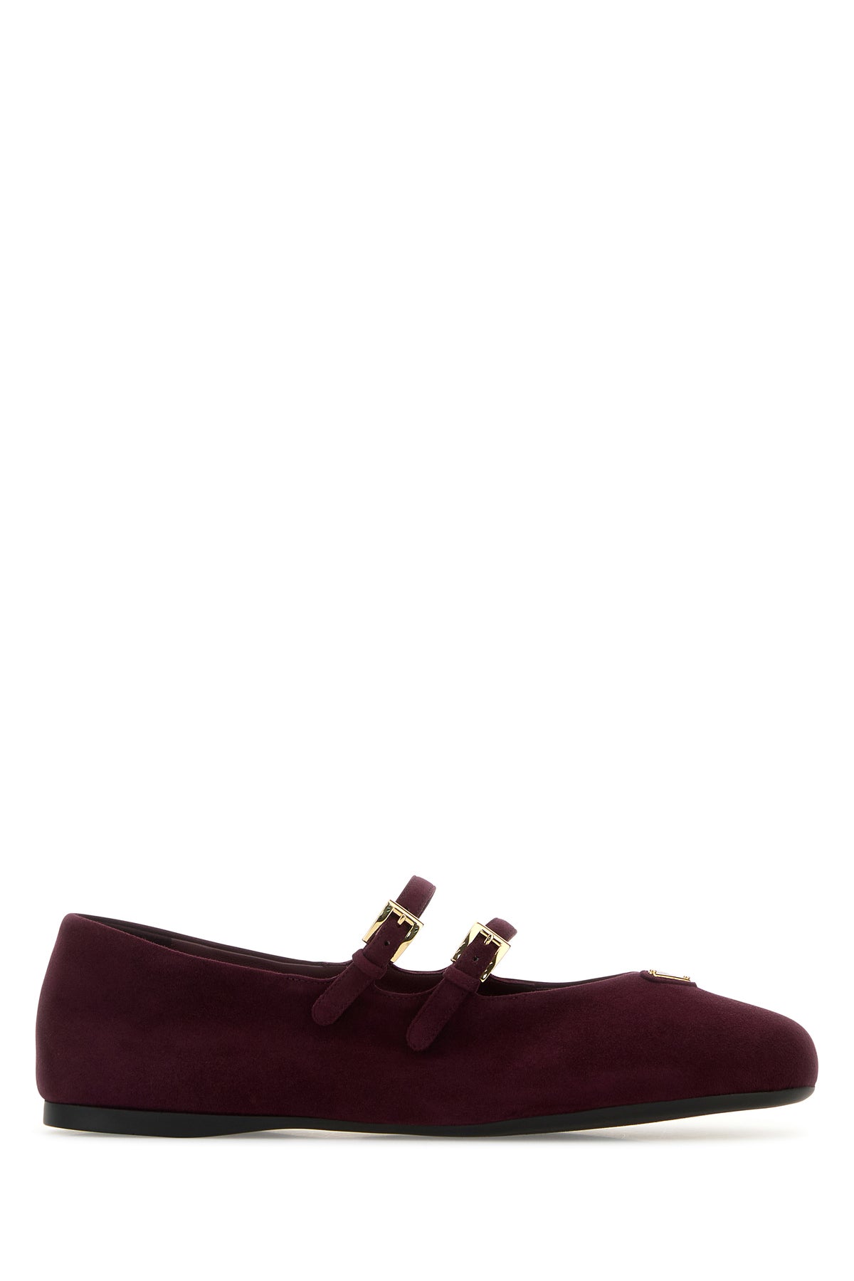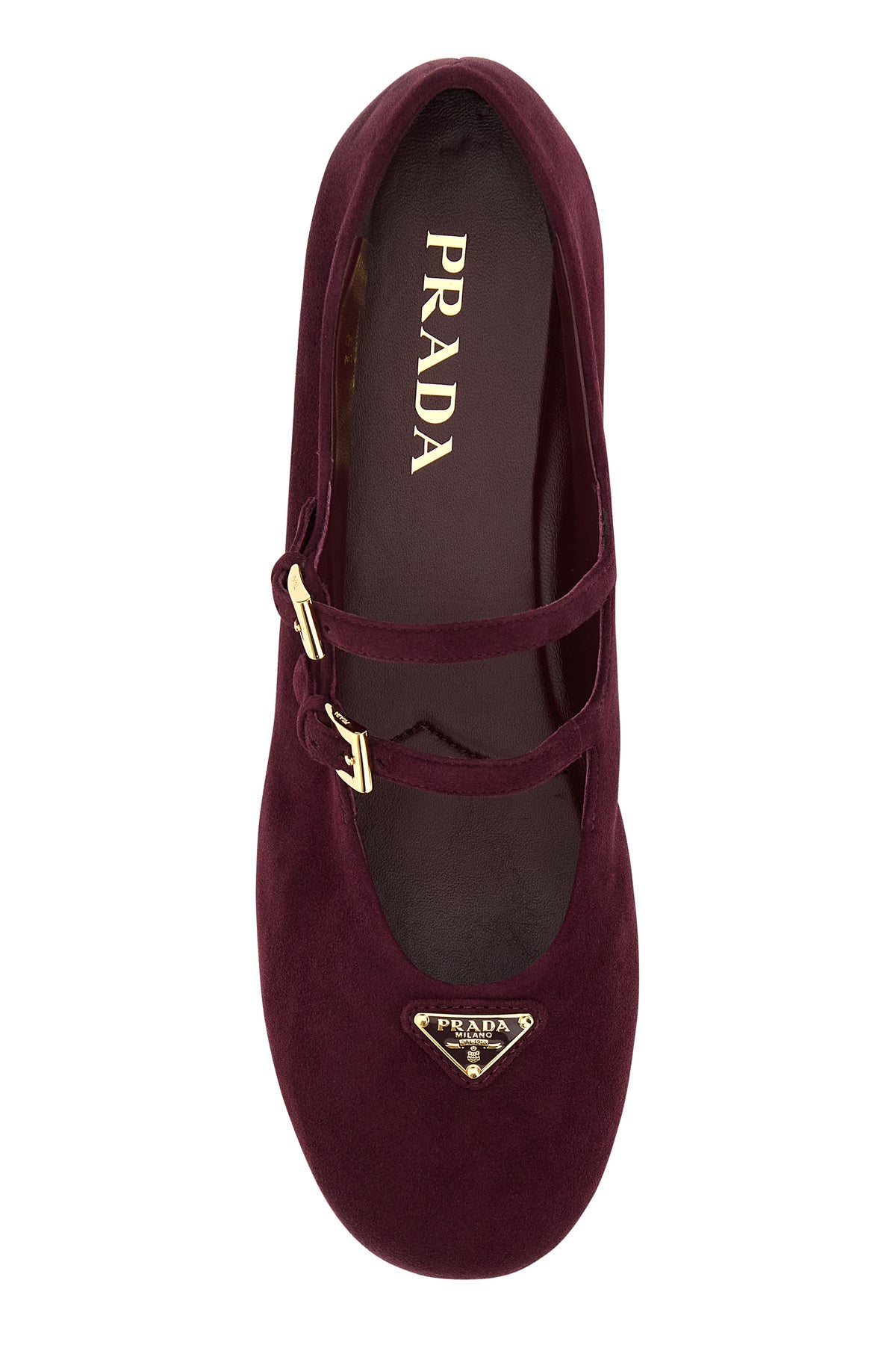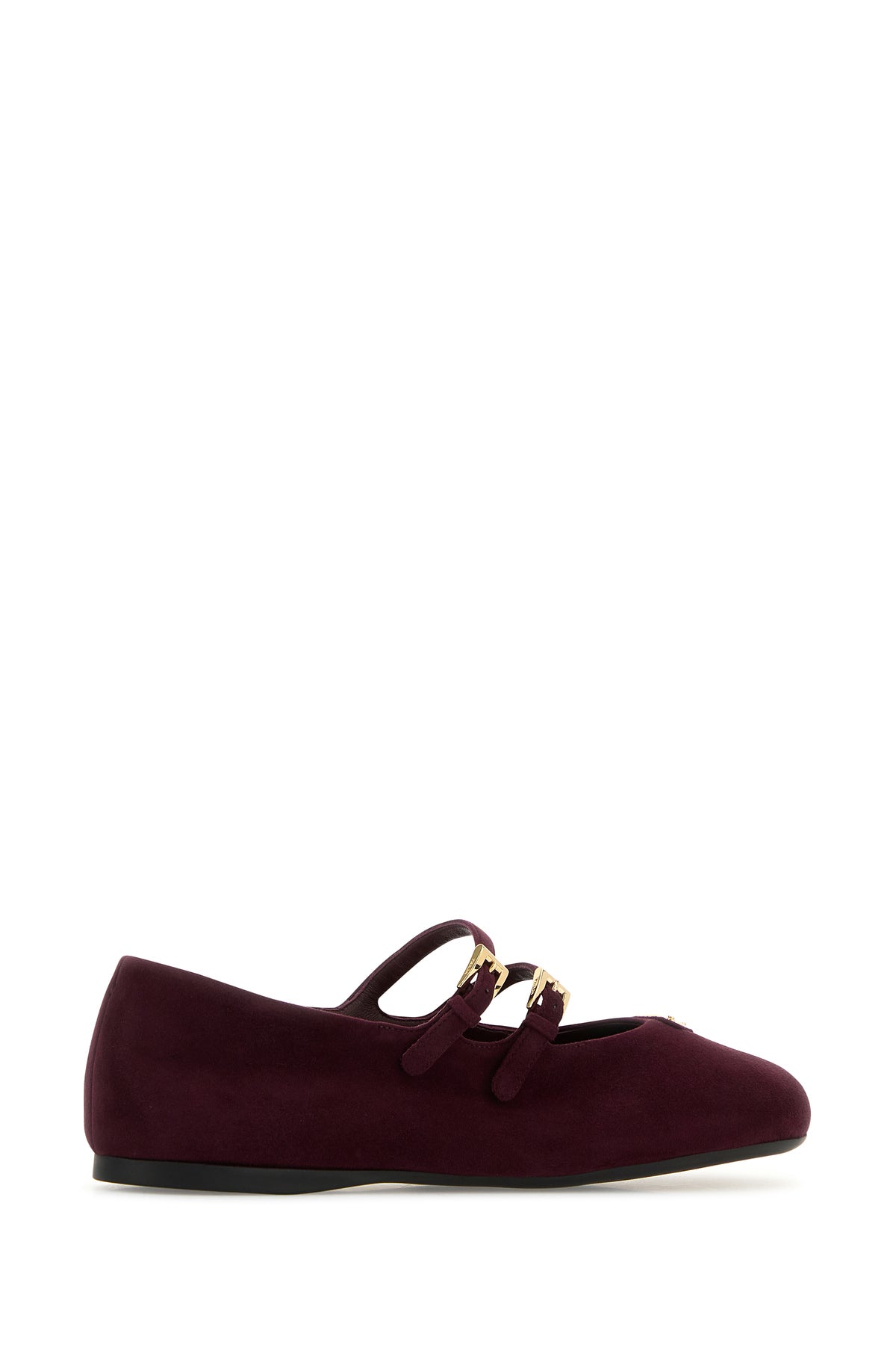 Ballerinas realized in suede enriched by iconic logoed metal triangle on the instep.
