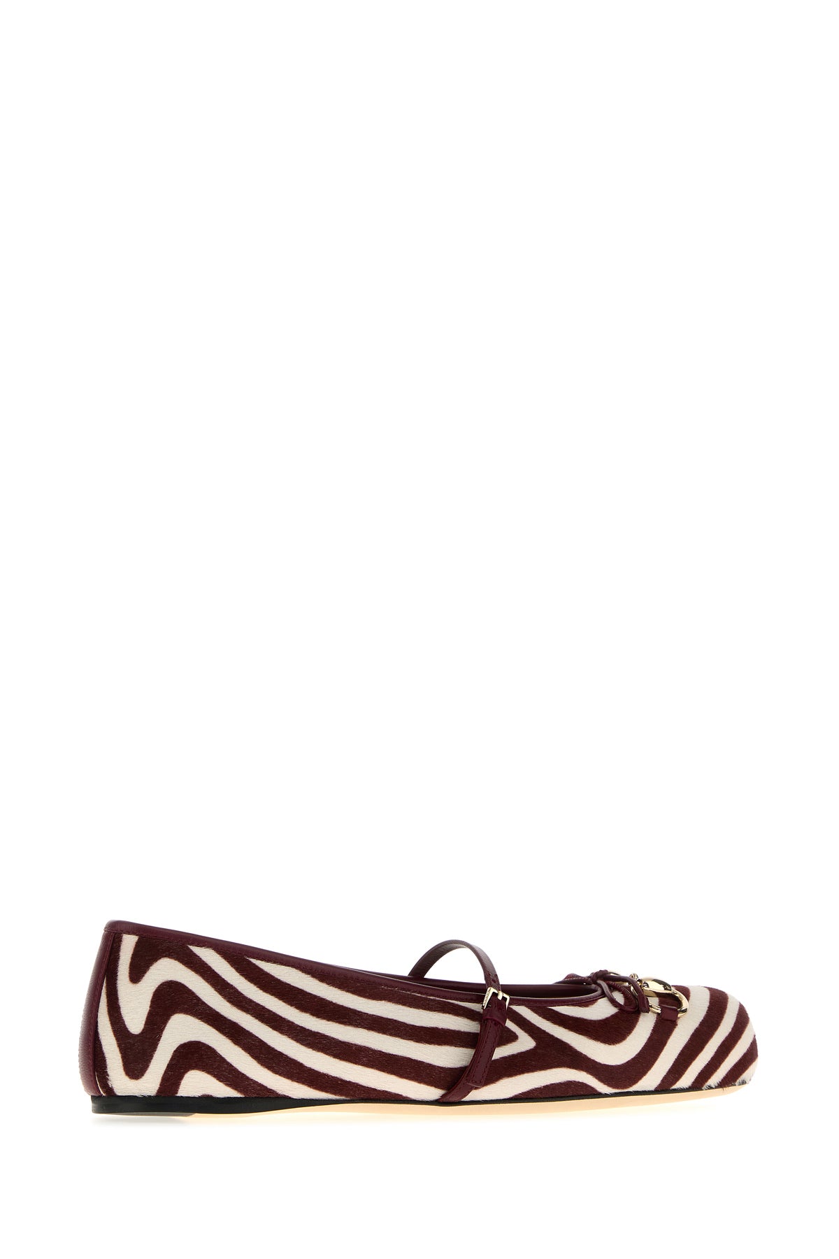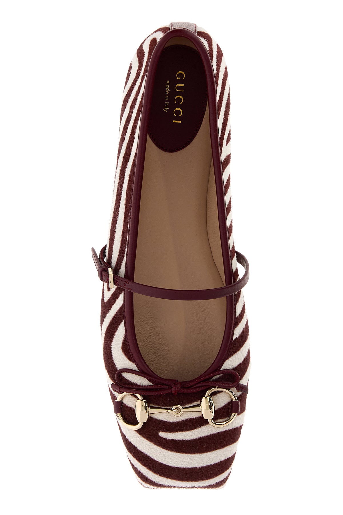 Ballerinas realized in calf hair characterized by animal print on the entire surface enriched by Horsebit metal detail on the instep.