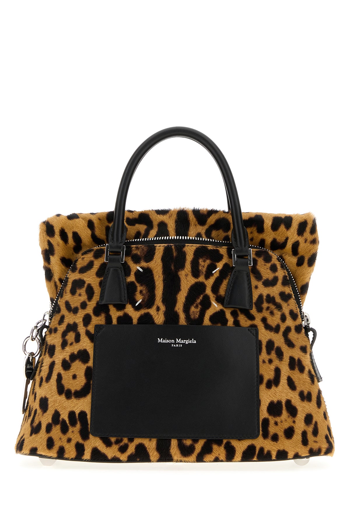 Handbag realized in calf hair characterized by animal print on the entire surface, printed logo at the front enriched by logoed label at the front.