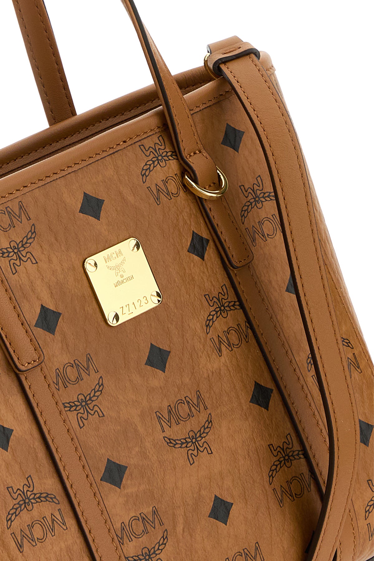 Handbag realized in coated canvas with smooth leather inserts characterized by Visetos print on the entire surface enriched by metal logoed plate at the front.