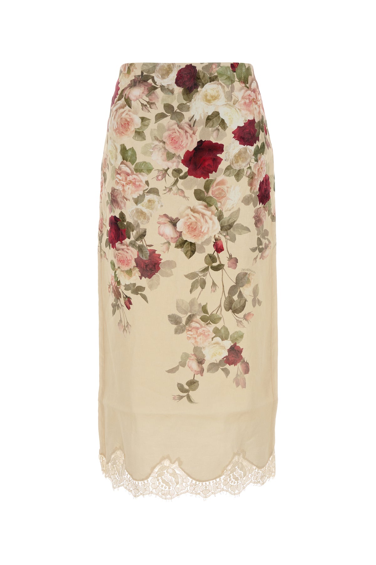 Fitted skirt realized in pure linen characterized by floral print at the top.