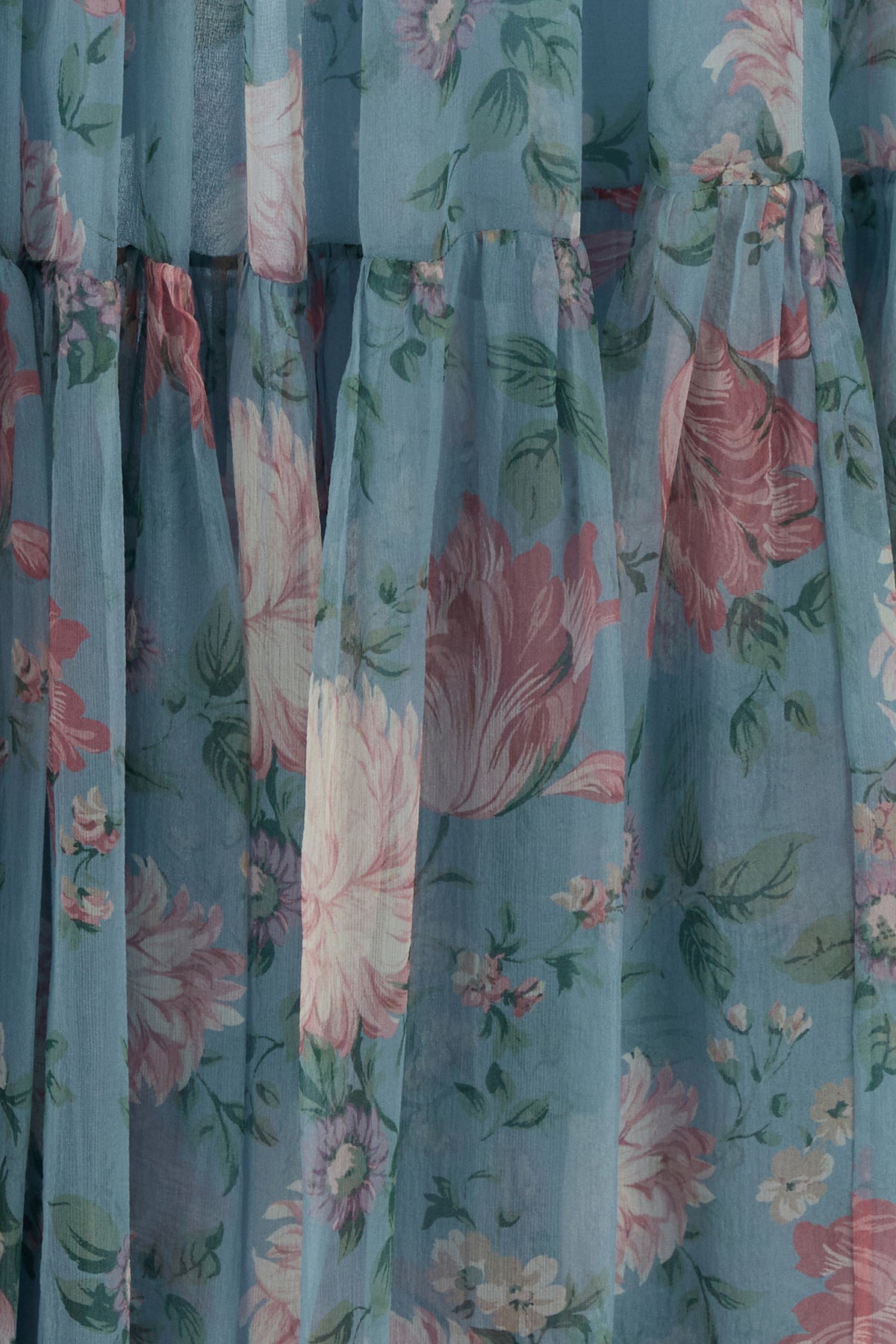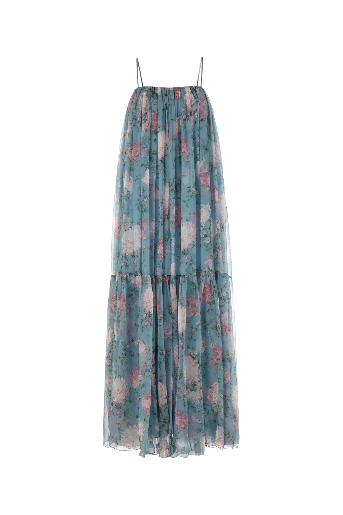 Long dress realized in pure silk muslin characterized by Peony print on the entire surface.