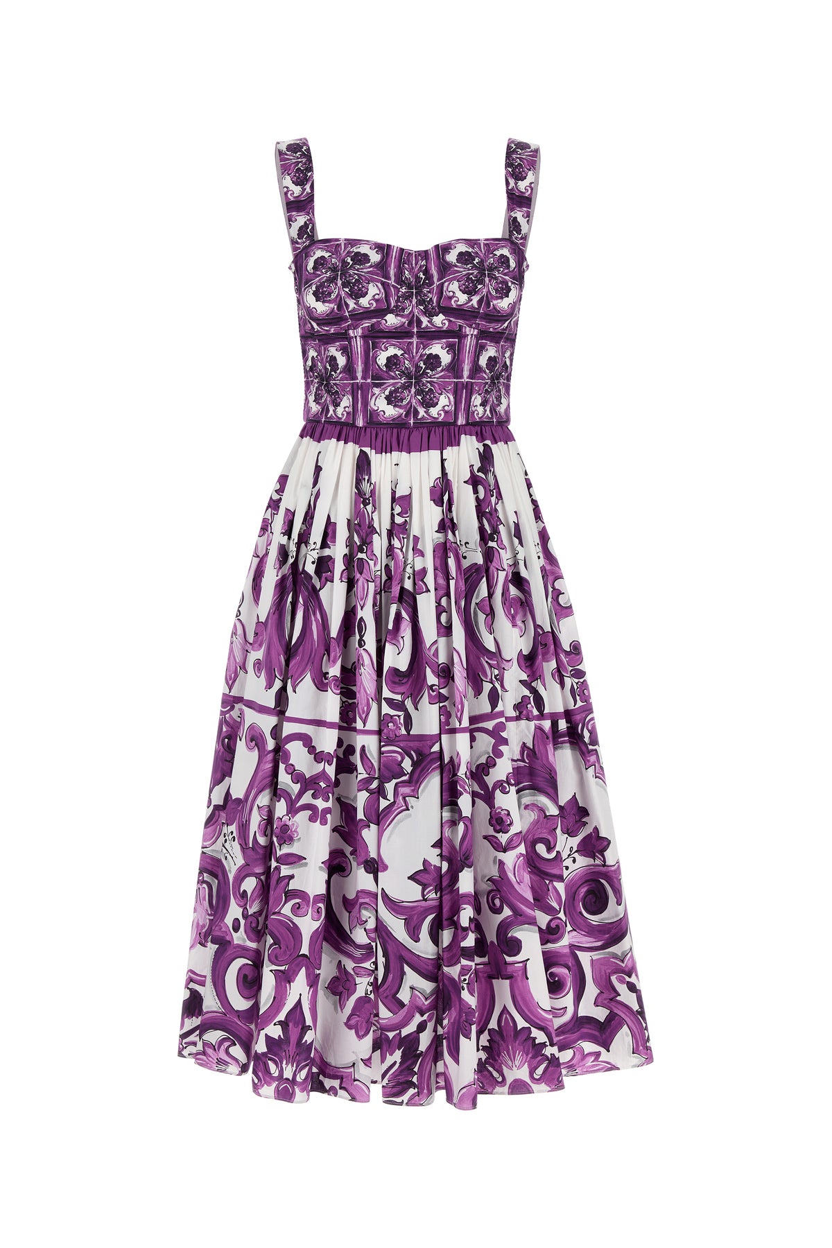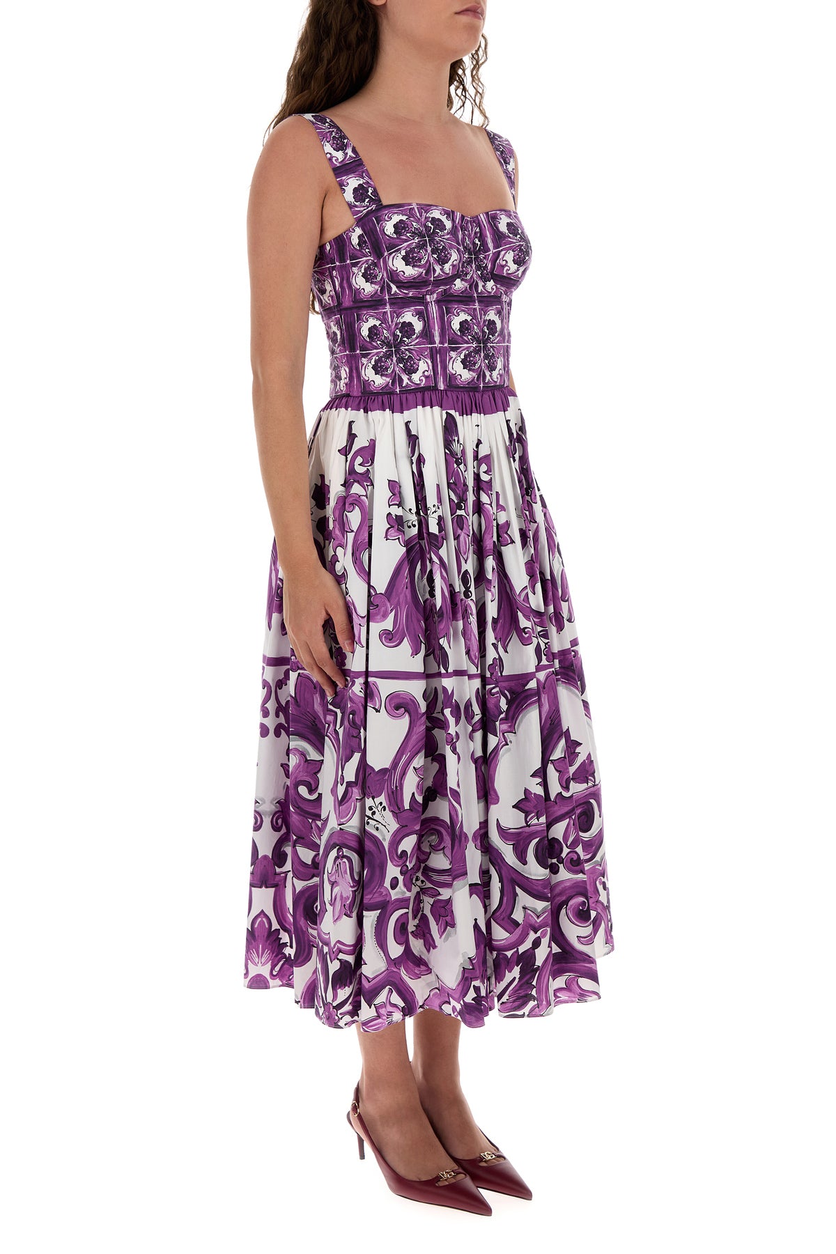Midi-length dress realized in pure cotton poplin characterized by Maiolica print on the entire surface.