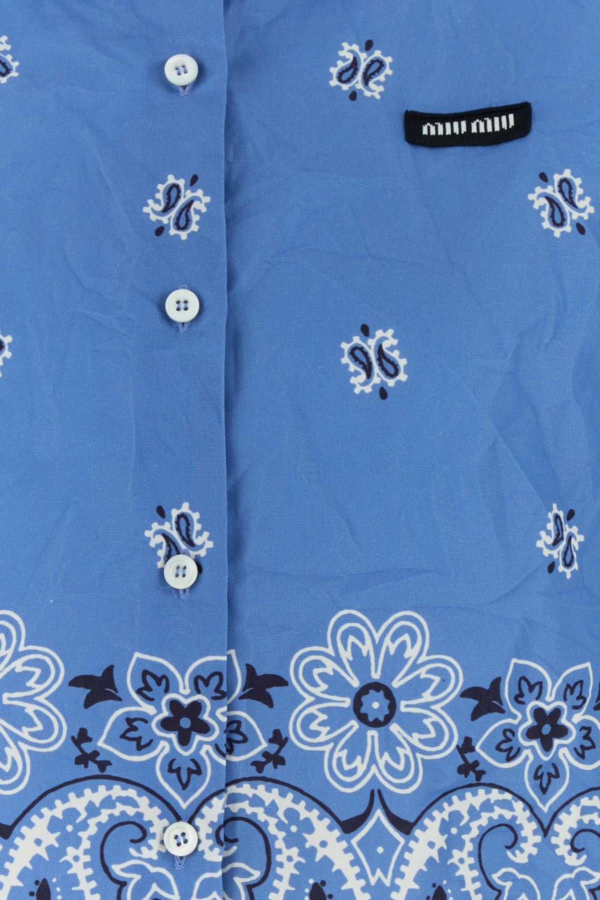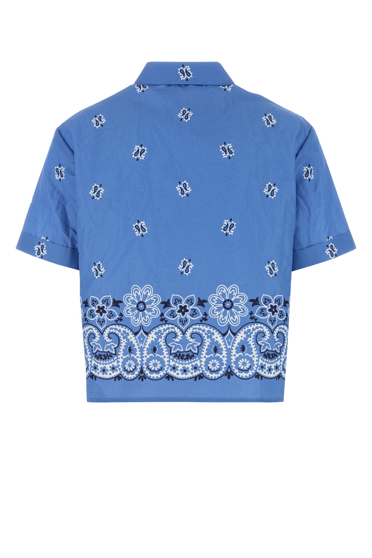 Cropped-cut shirt realized in cotton and linen poplin characterized by paisley print on the entire surface enriched by logoed patch on the chest.