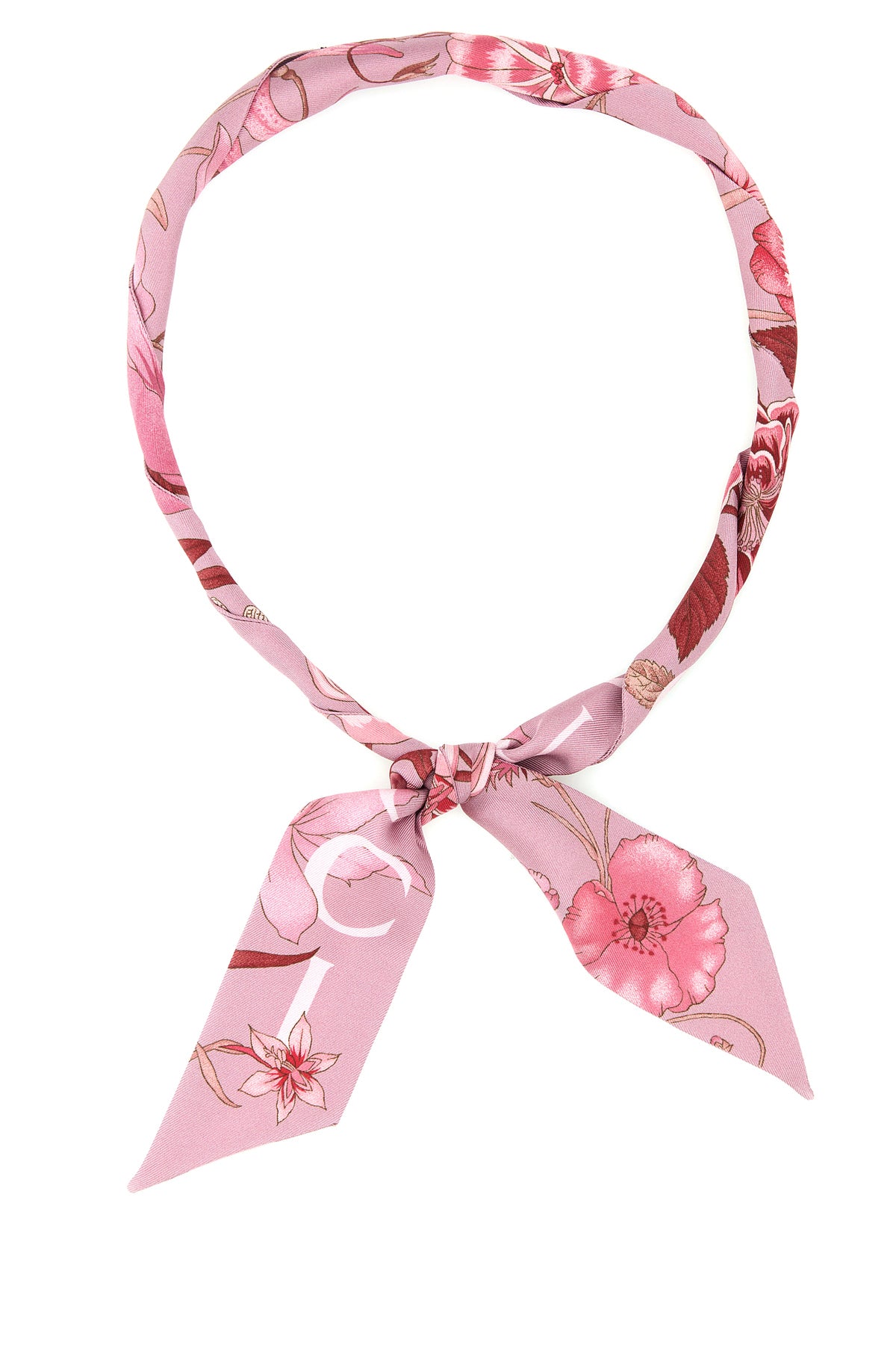 Foulard realized in pure silk characterized by floral print on the entire surface and logoed print.
