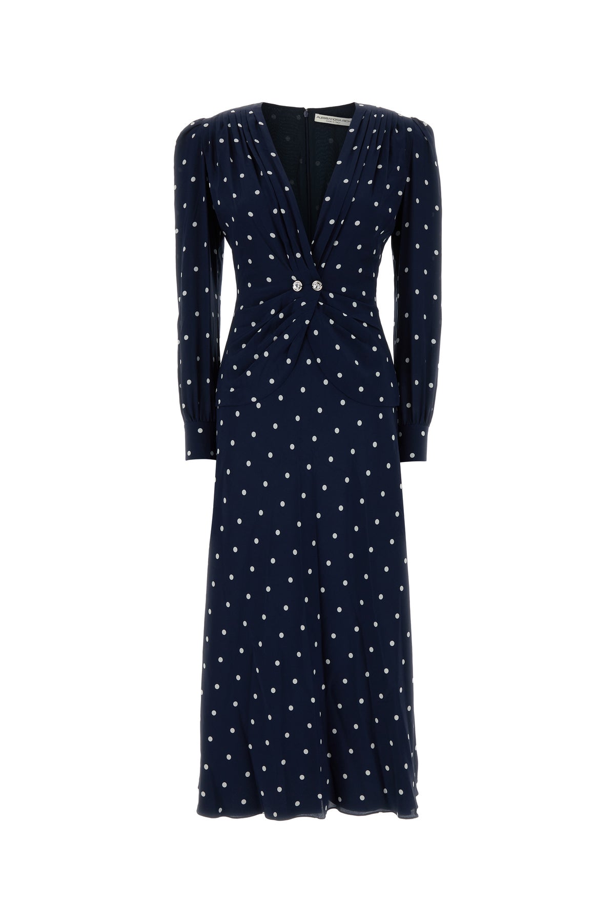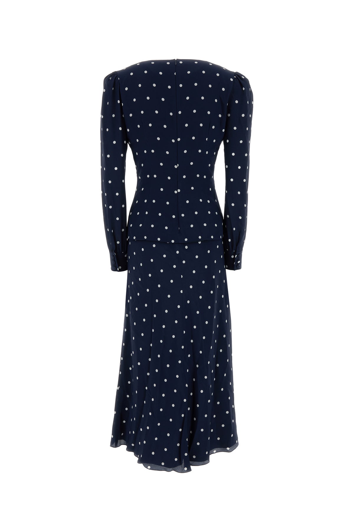 Long dress realized in pure silk characterized by polka doit print on the entire surface.