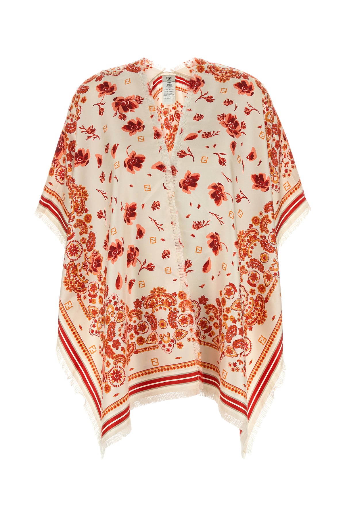 Poncho realized in pure silk characterized by Coral Bandana print on the entire surface.