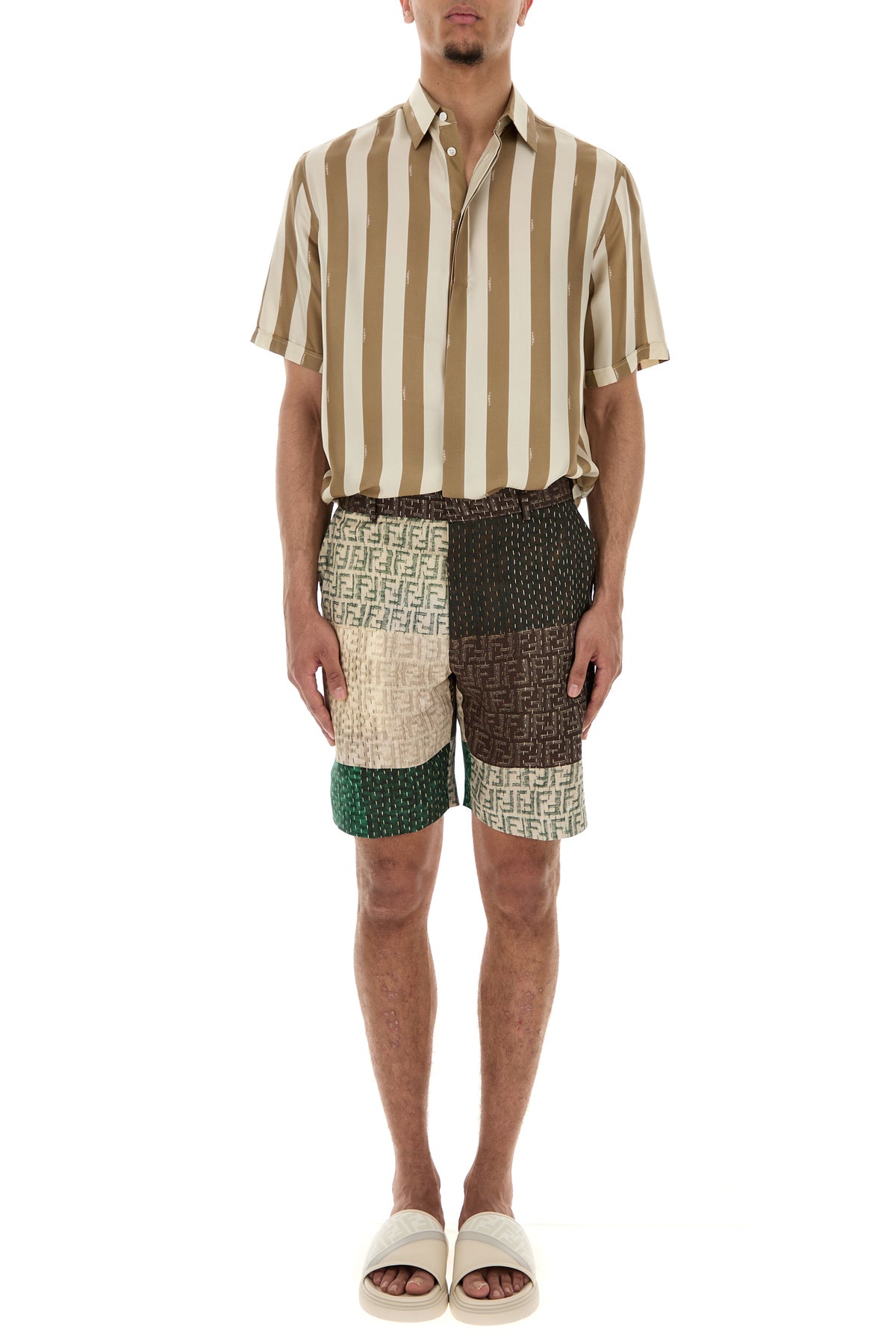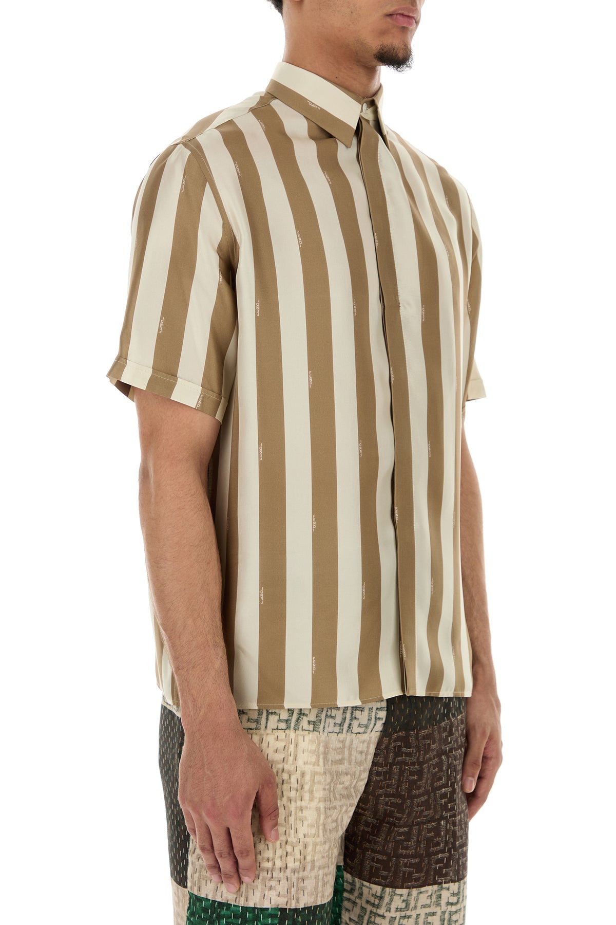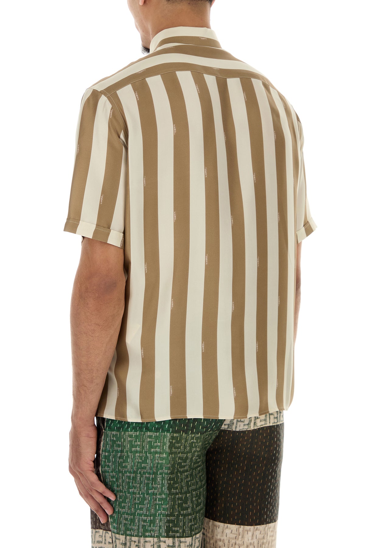 Short-sleeves shirt realzied in pure silk characterized by Pequin striped print on the entire surface.