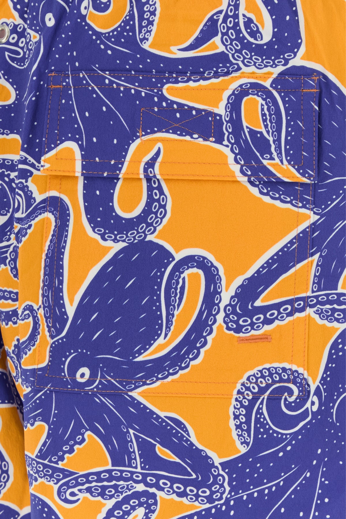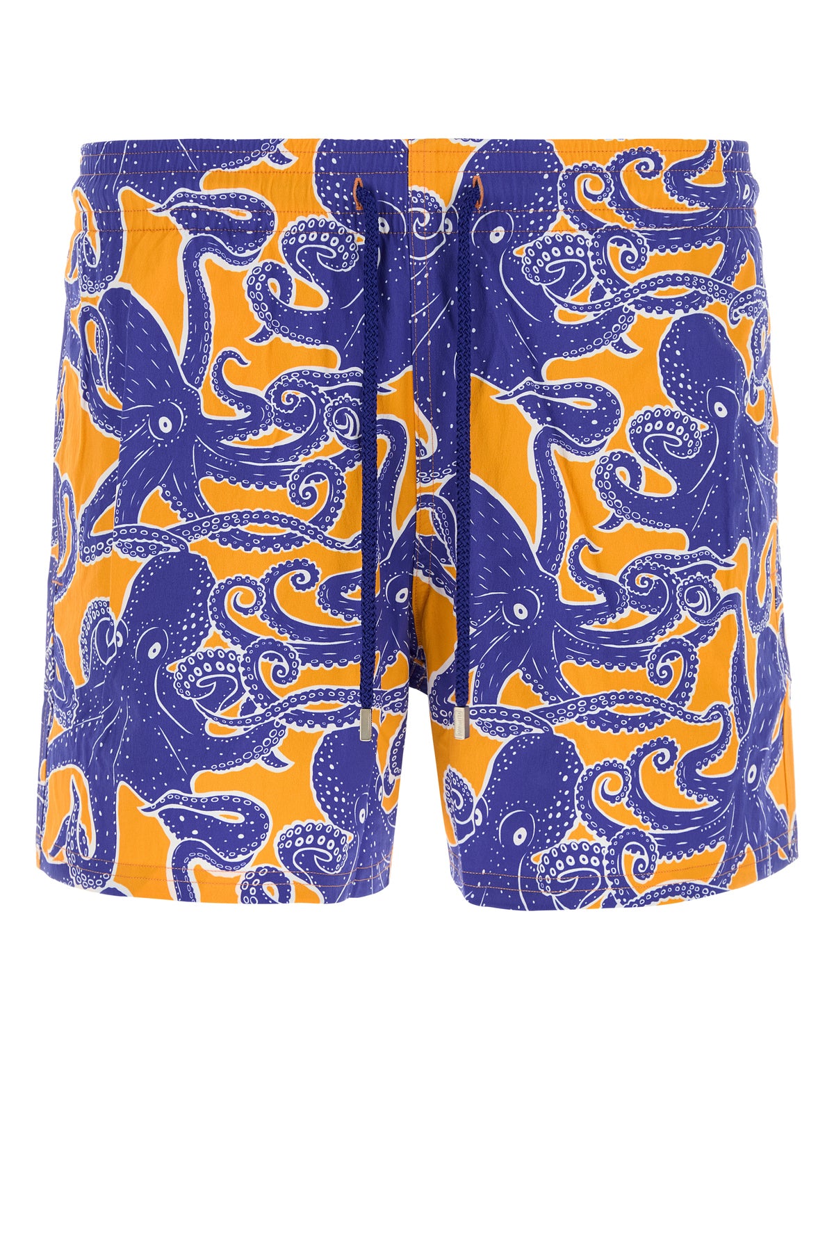 Swimming shorts realized in stretch nylon characterized by peculiar print on the entire surface enriched by logoed label at the back.