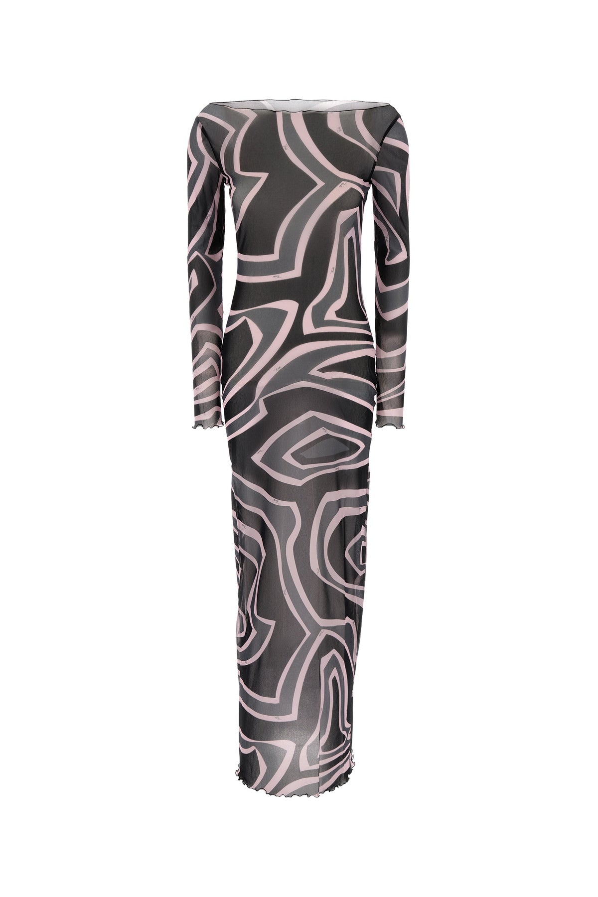 Long-cut dress realized in tulle characterized by Marmo print on the entire surface.