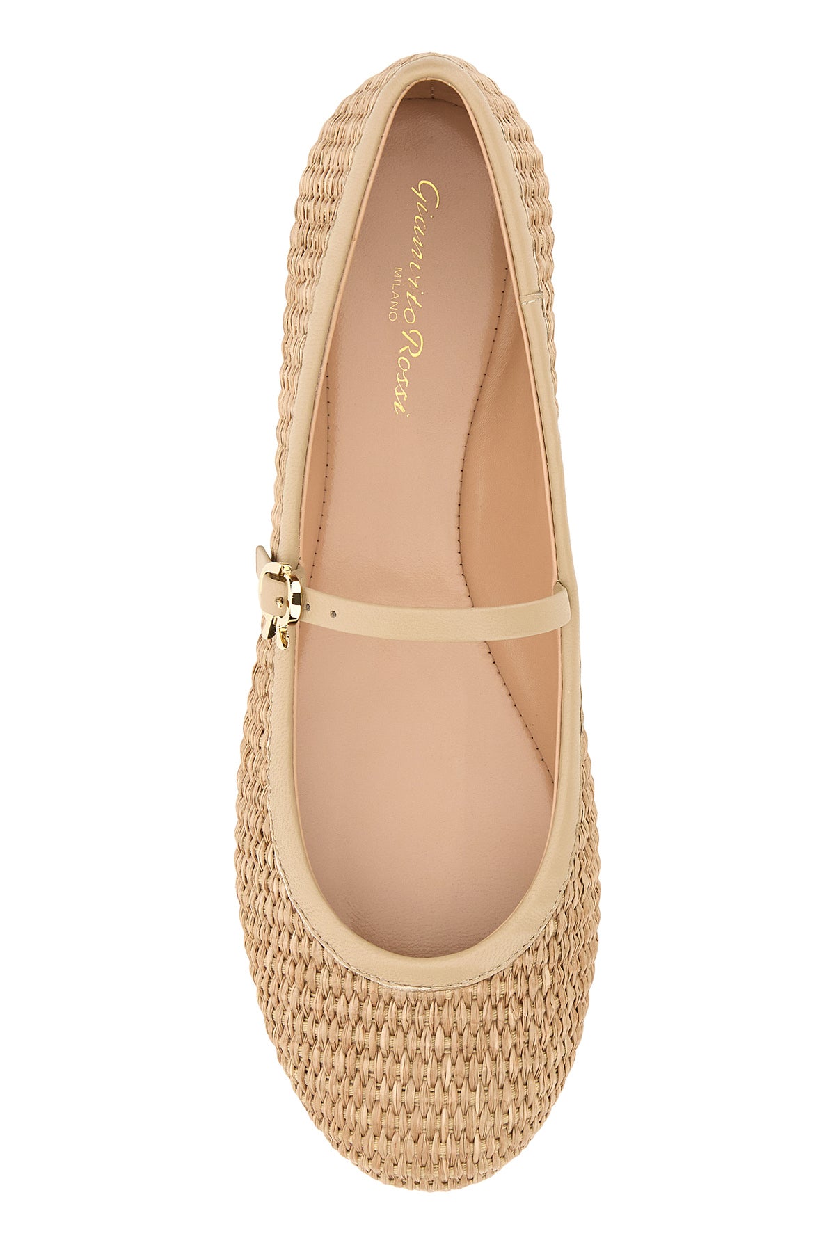 Ballerinas realized in raffia characterized by adjustable instep strap closure.