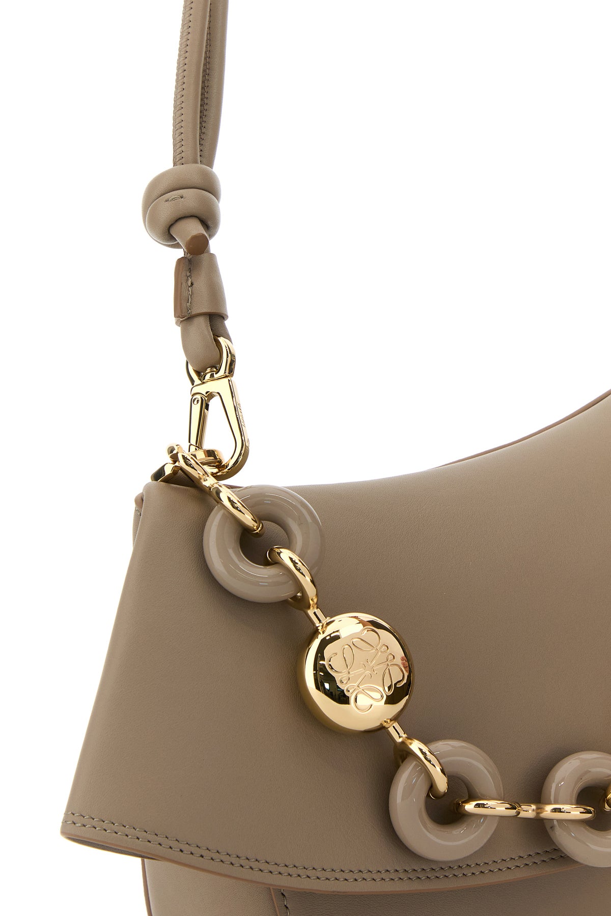 - Metal chain and acetate Donut handle with embossed Anagram motif