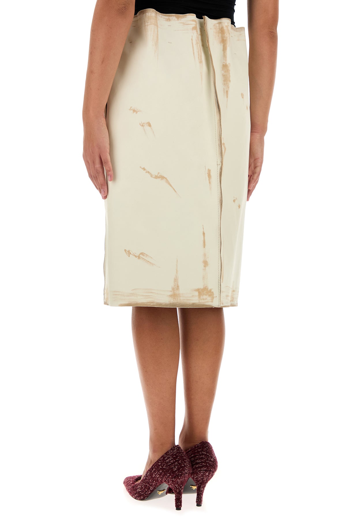 Flared skirt realized in calf leather characterized by intentional dirties.