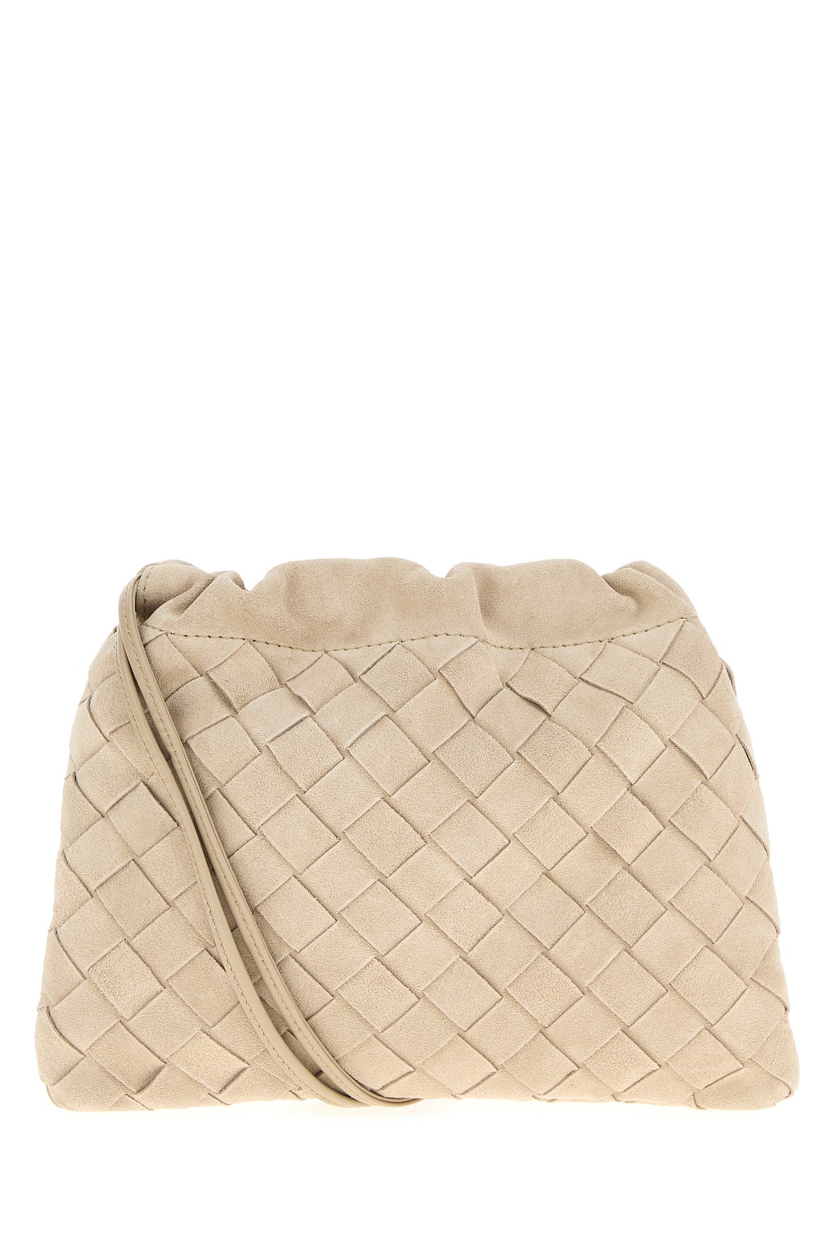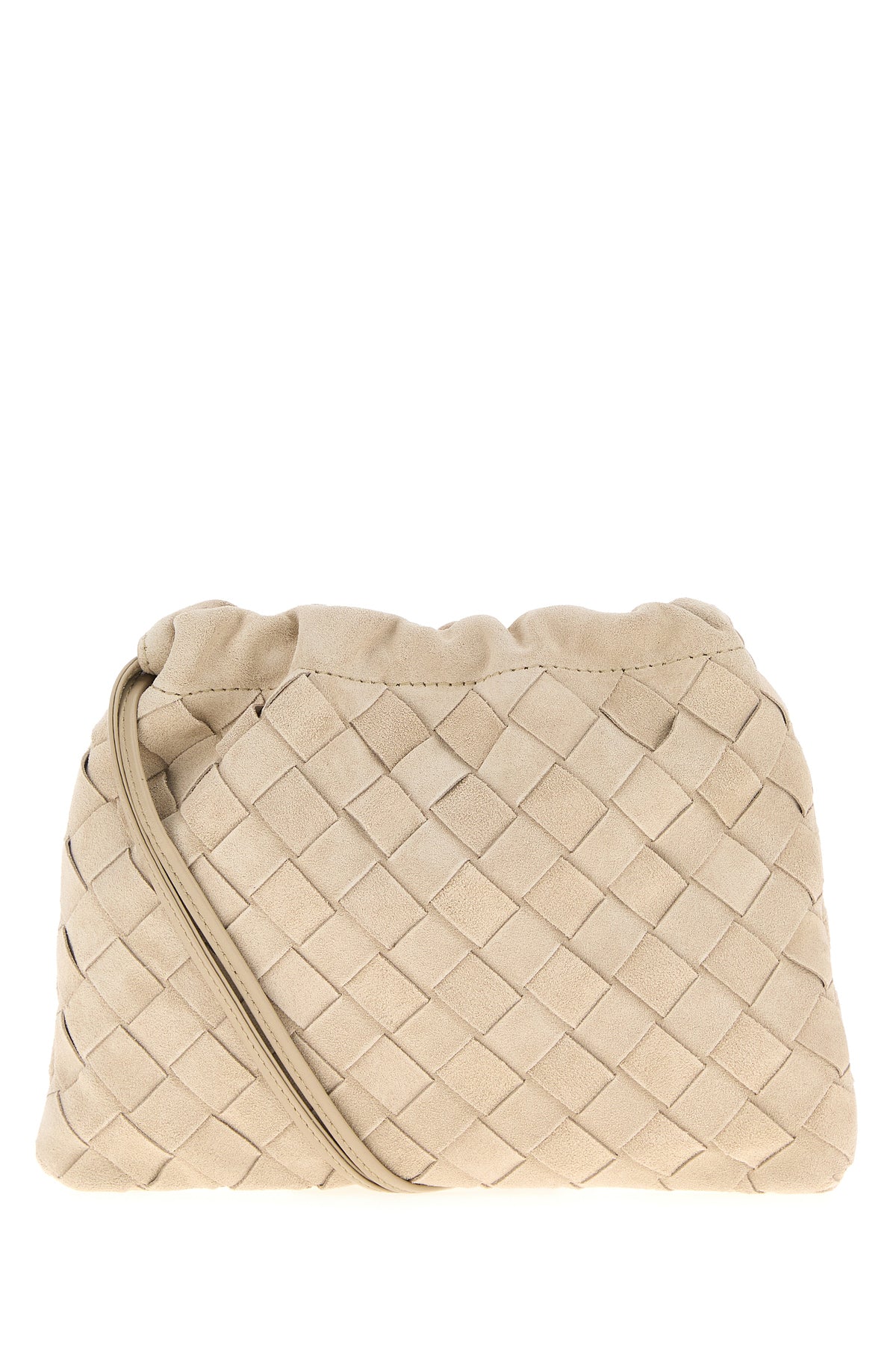 Crossbody bag realized in suede characterized by iconic Intrecciato motif on the entire surface.