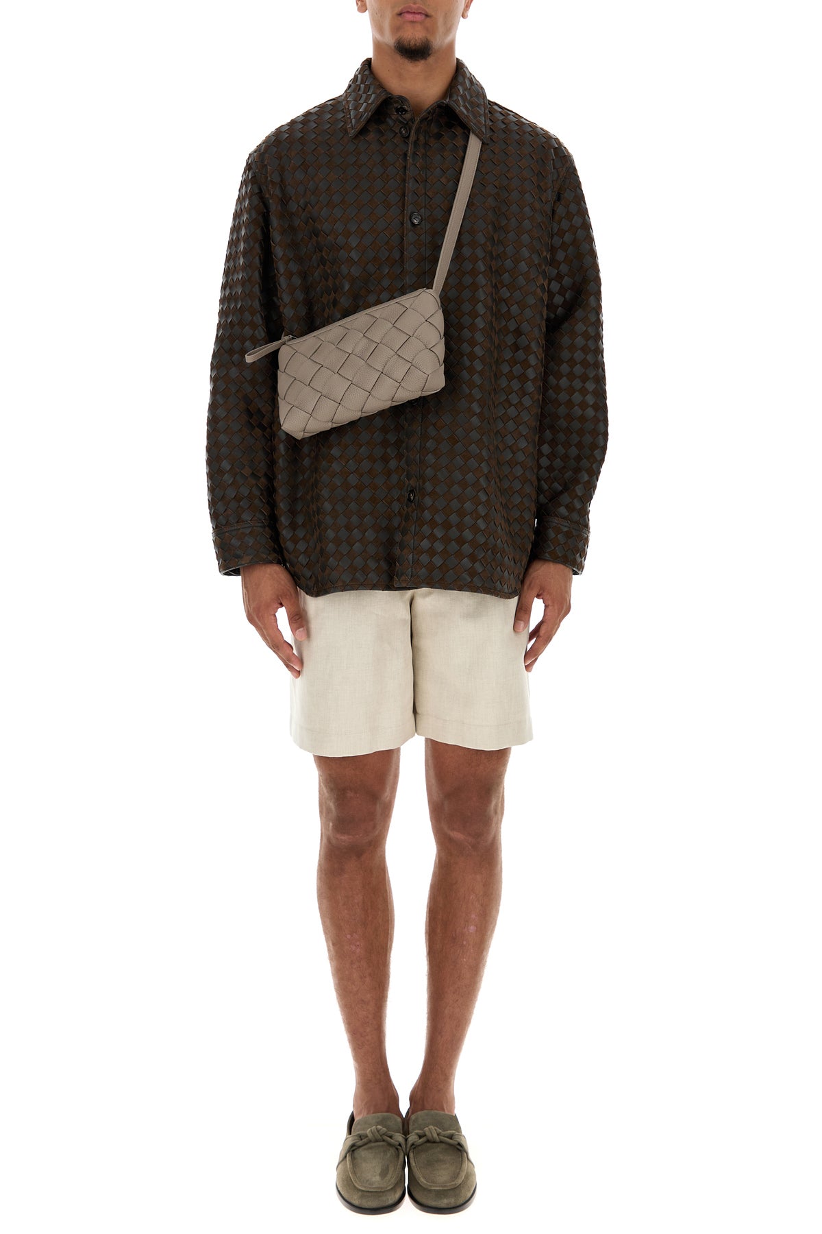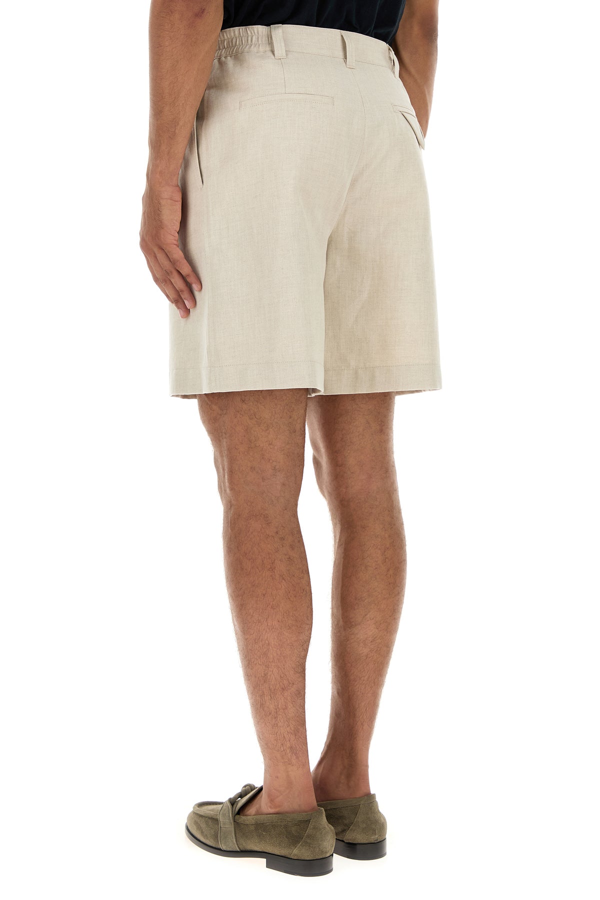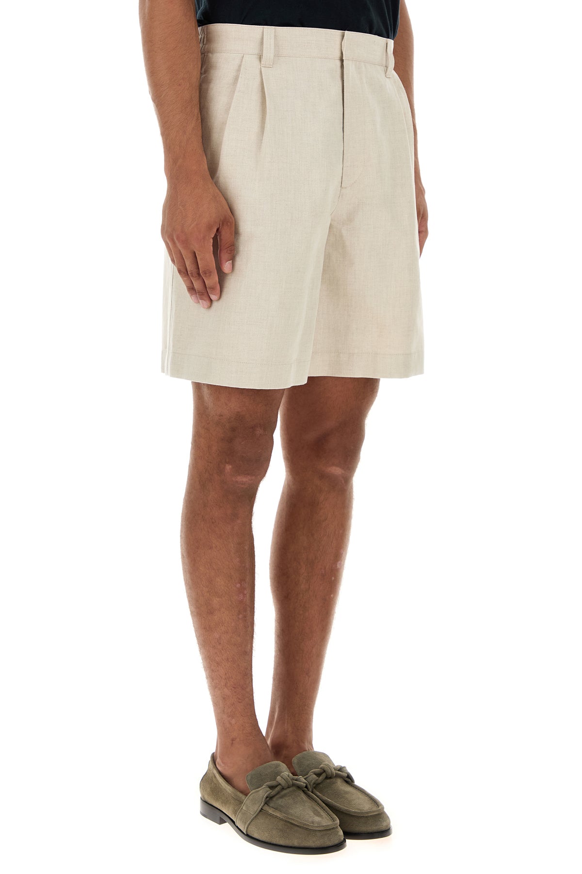 Bermuda shorts realized in linen and cotton twill characterized by by inverted pleats.