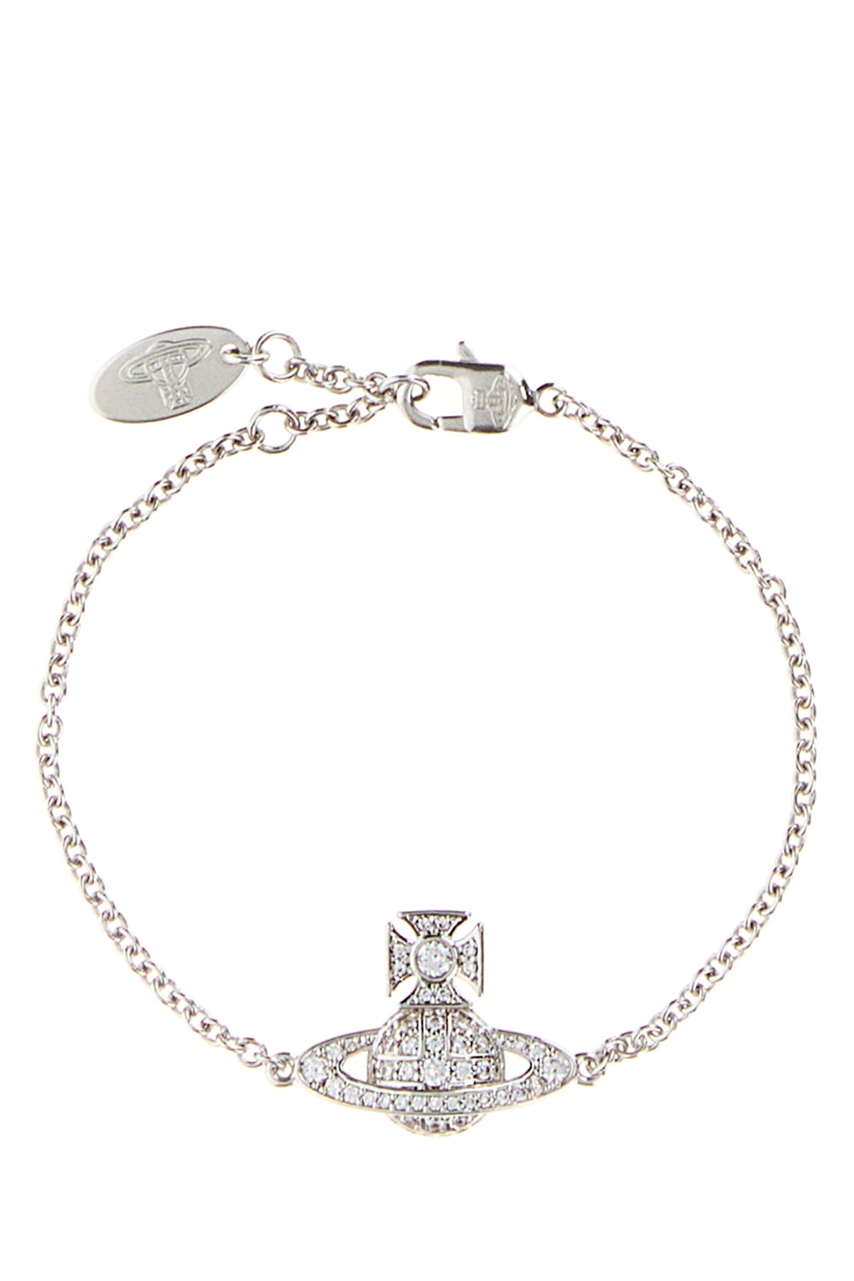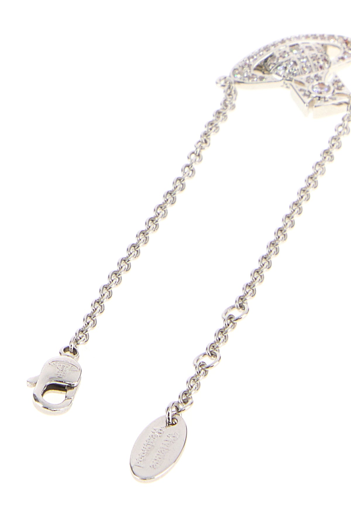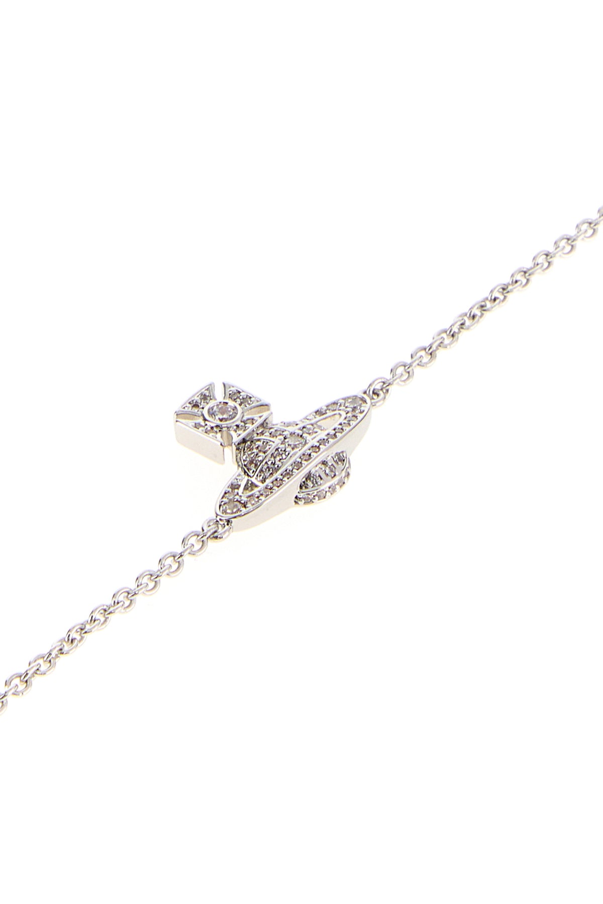 Bracelet realized in silver-tone pleated metal enriched by Orb detail with rhinestones.