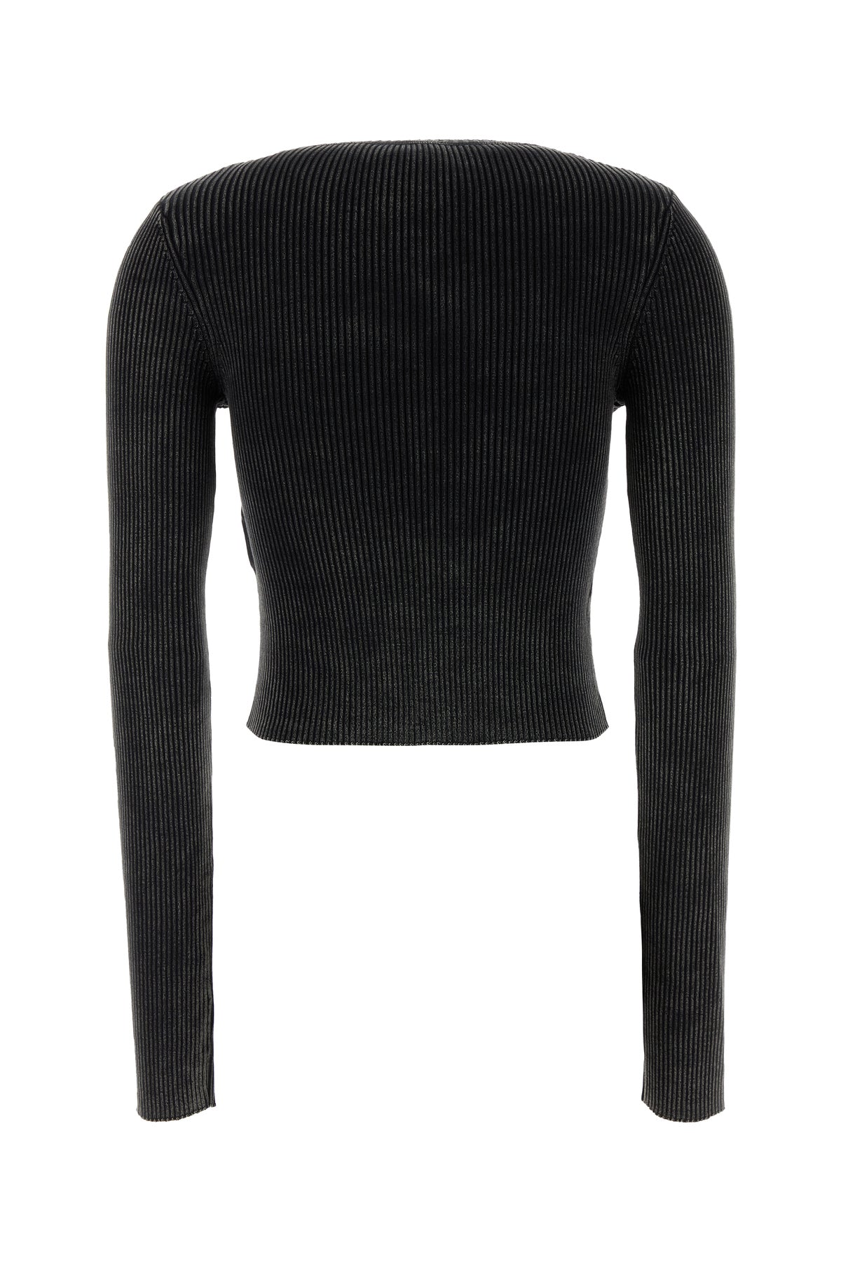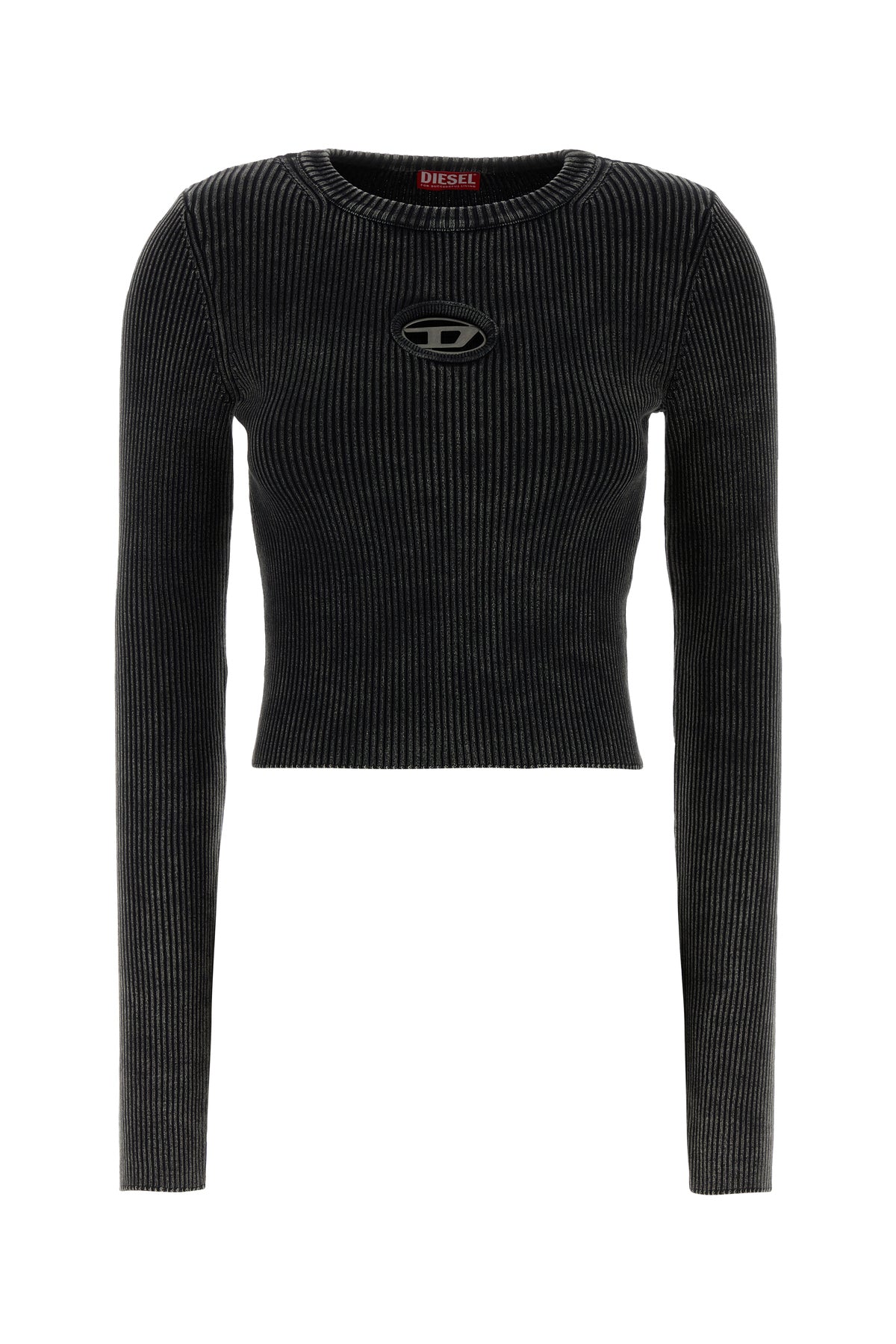 Long-sleeves t-shirt realized in ribbed pure cotton enriched by D metal detail on the chest.