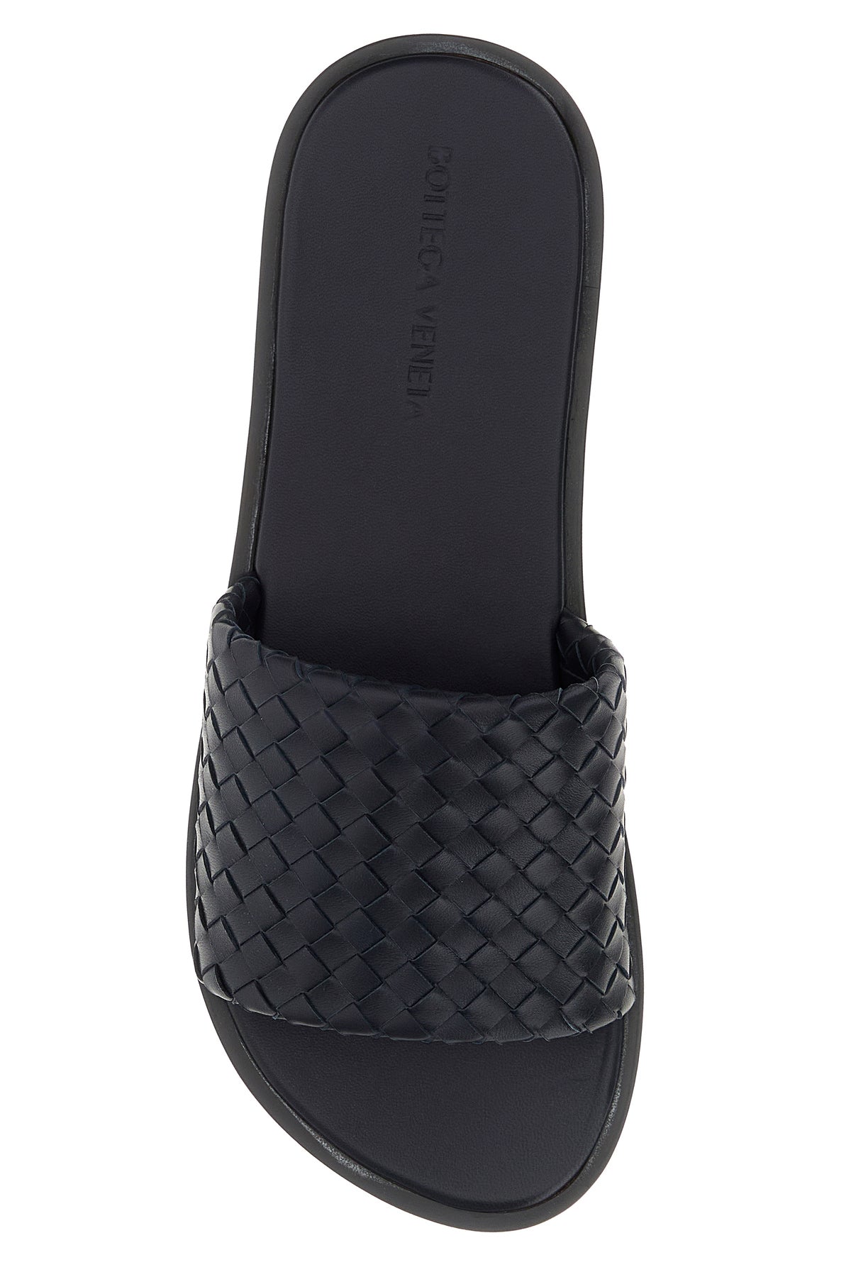 Slippers realized in nappa leather characterized by iconic Intrecciato motif on the instep.