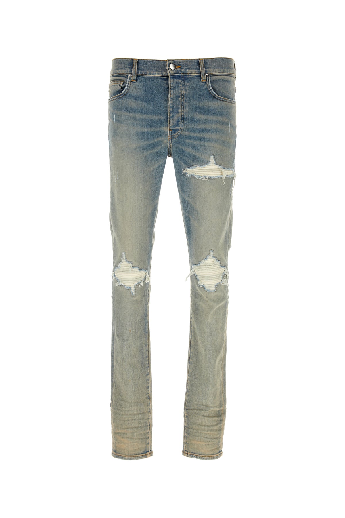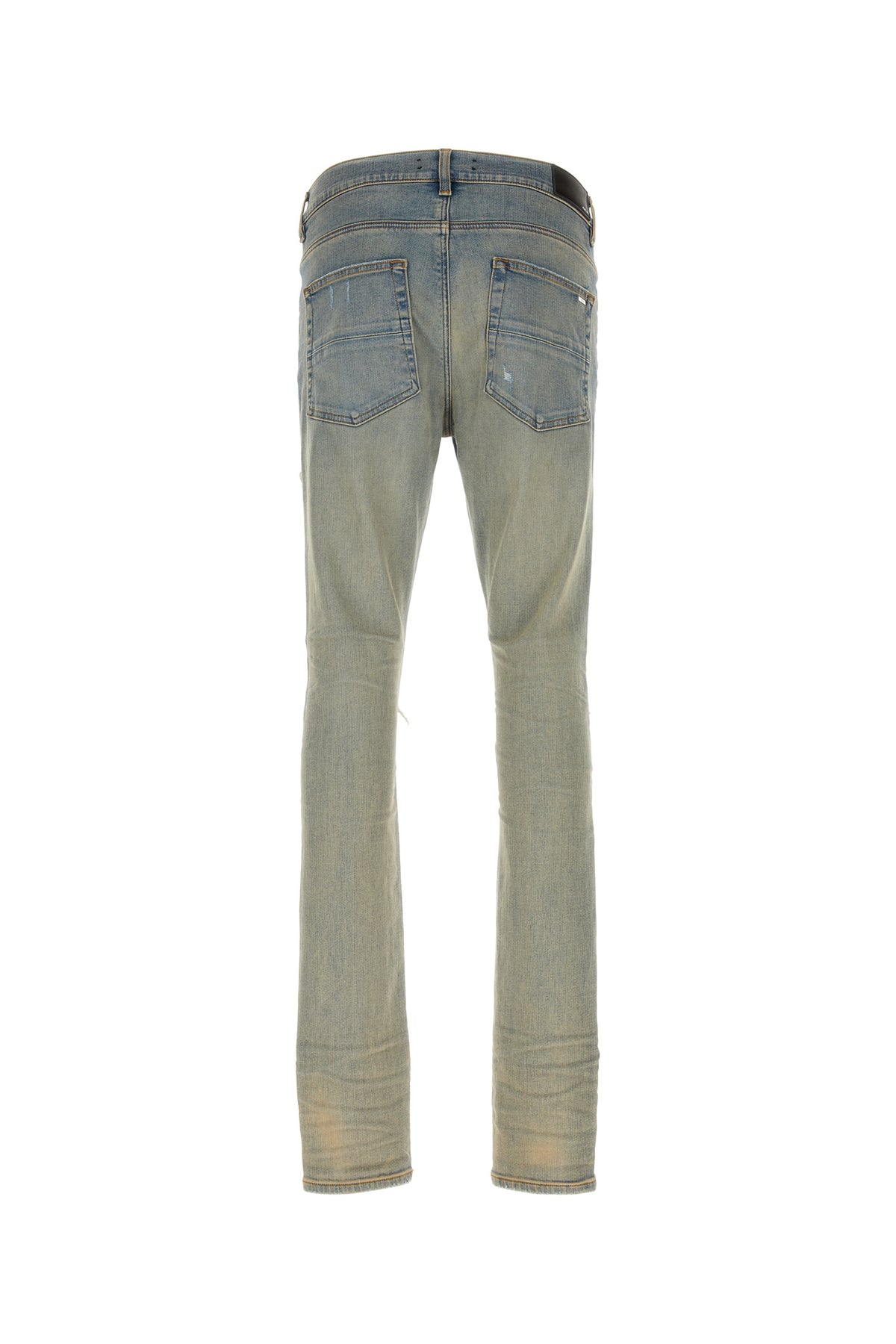 Skinny jeans realized in stonewashed stretch cotton denim with repaired rips enriched by contrasting logoed label and metal logoed plate at the back.