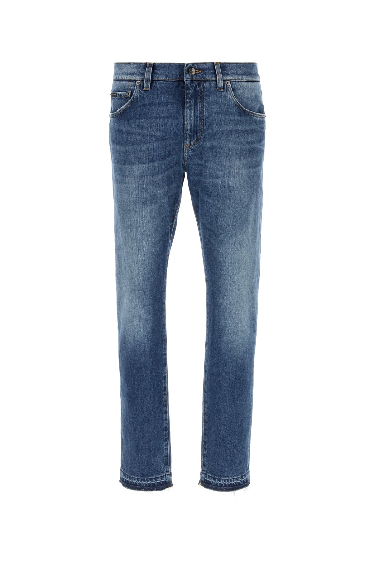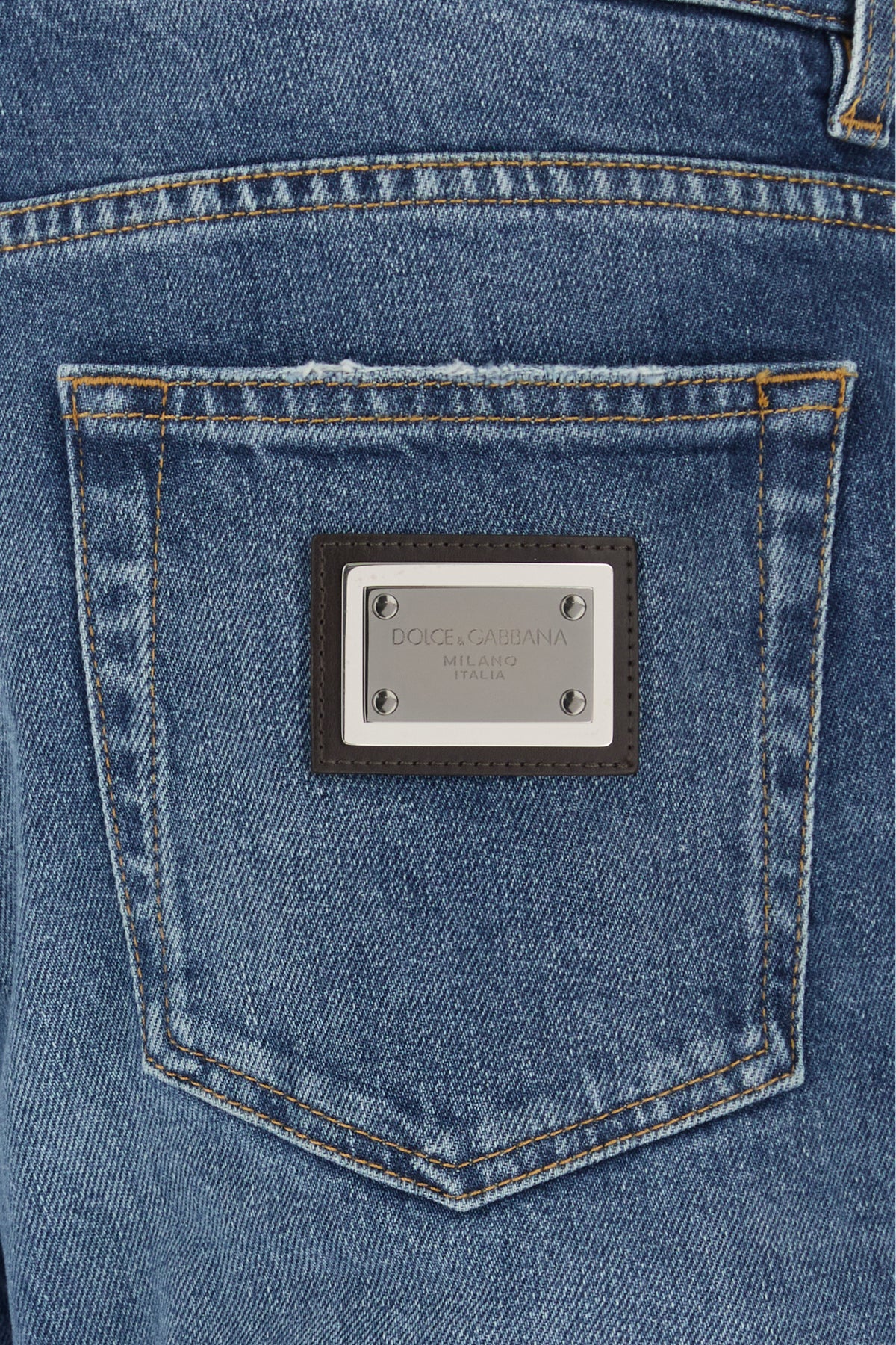 Jeans realized in stonewashed stretch cotton denim enriched by logoed metal plate at the back.
