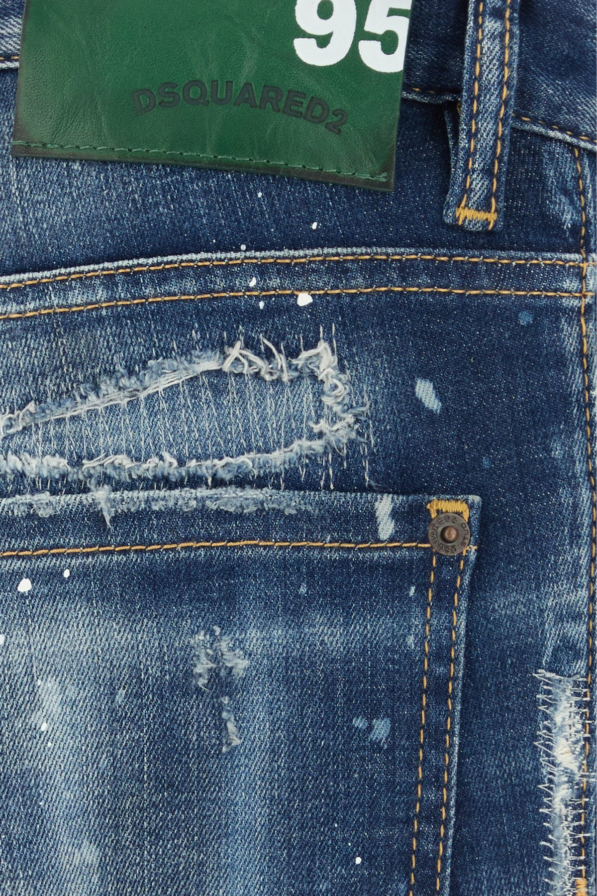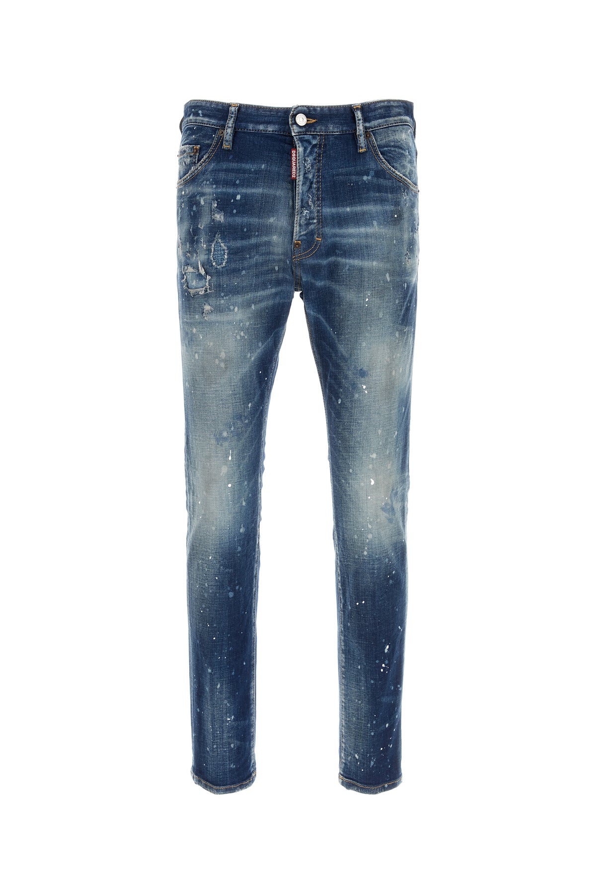 Jeans realized in stonewashed and distressed stretch cotton denim characterized by intentional dirties on the entire surface.