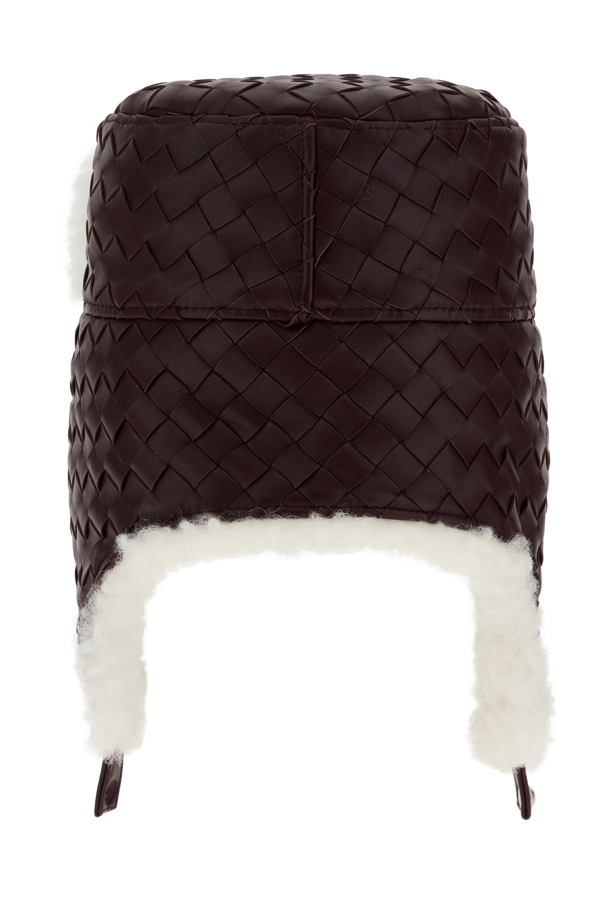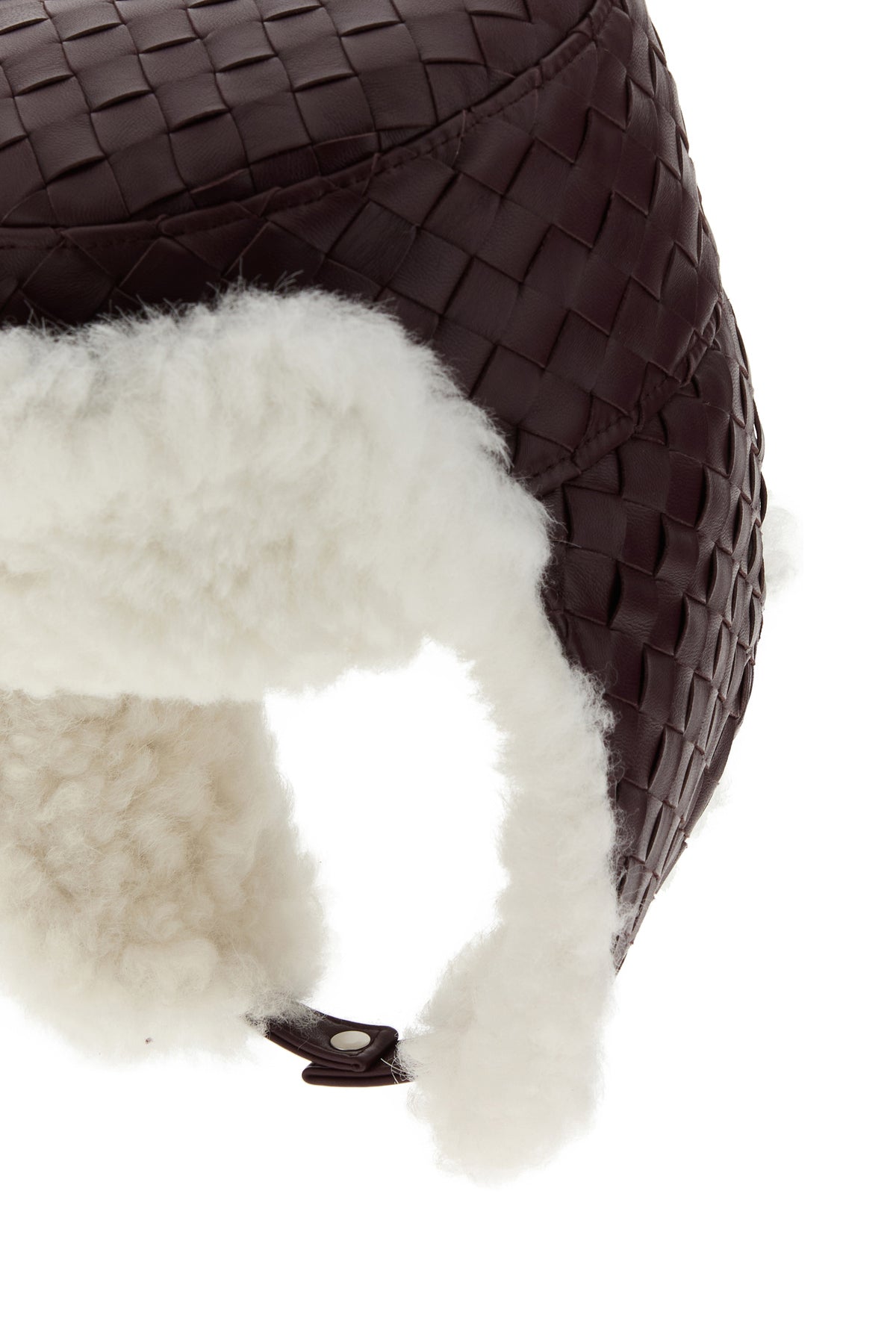 Aviator hat realized in lamb leather and shearling characterized by iconic Intrecciato motif on the entire surface.