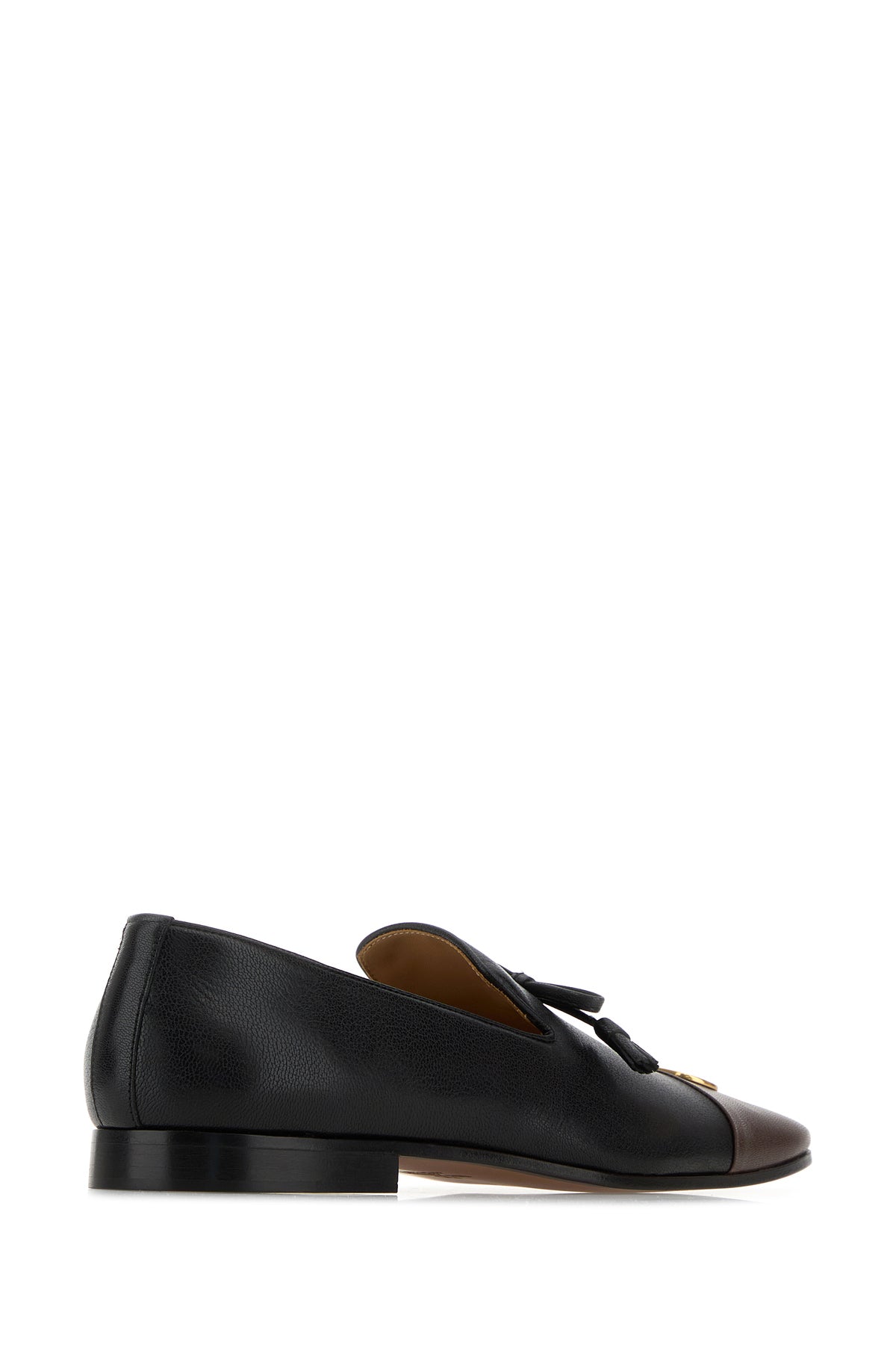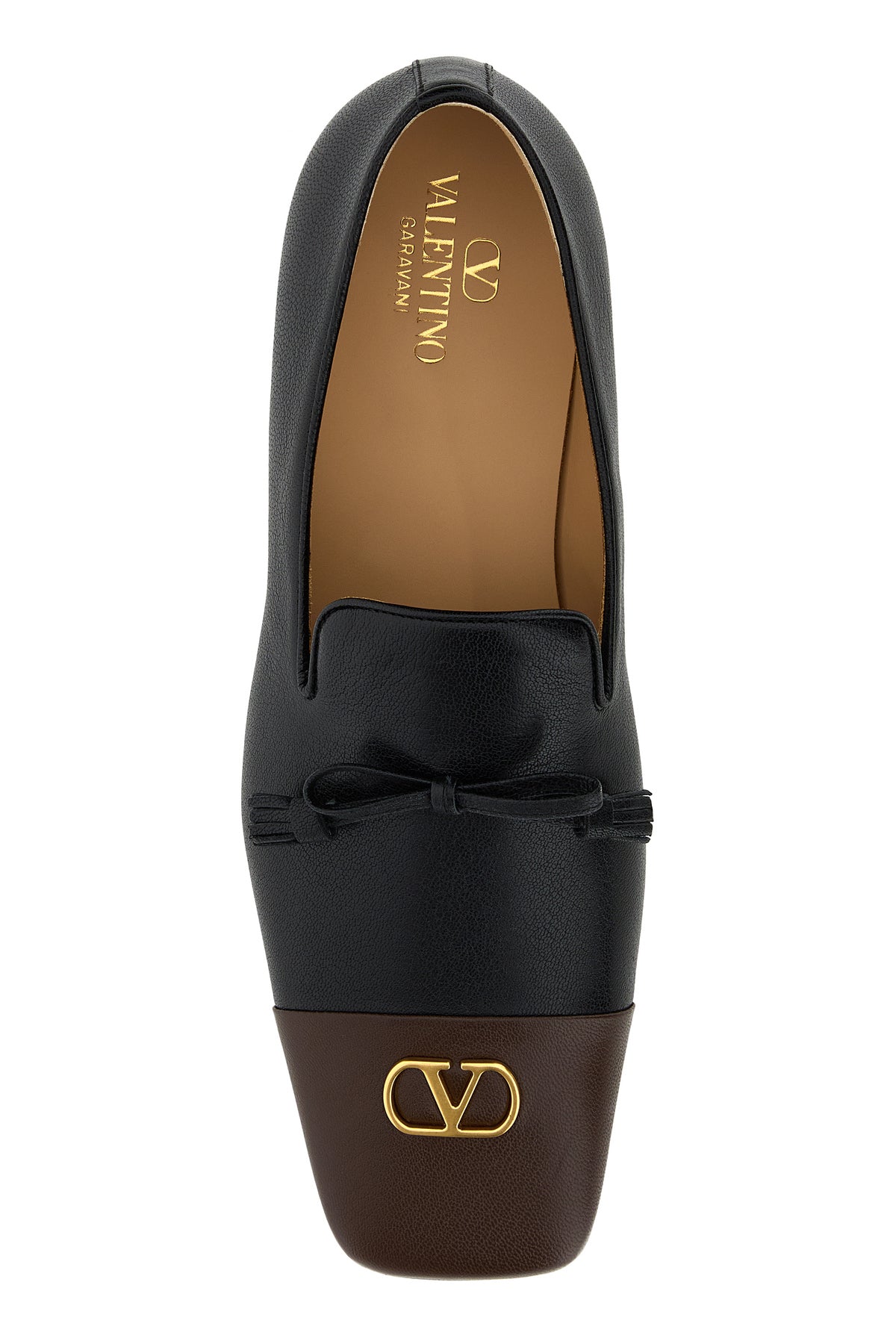 Loafers realized in pebble leather enriched by metal VLogo detail on the toe and decorative bow with tassels on the vamp.