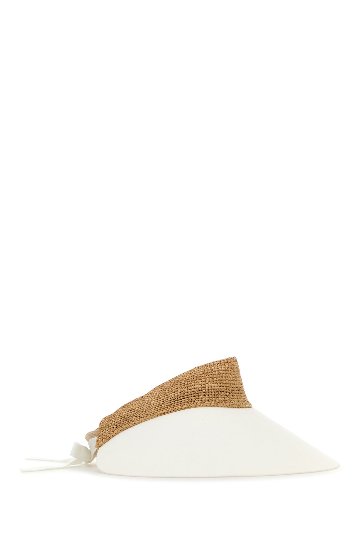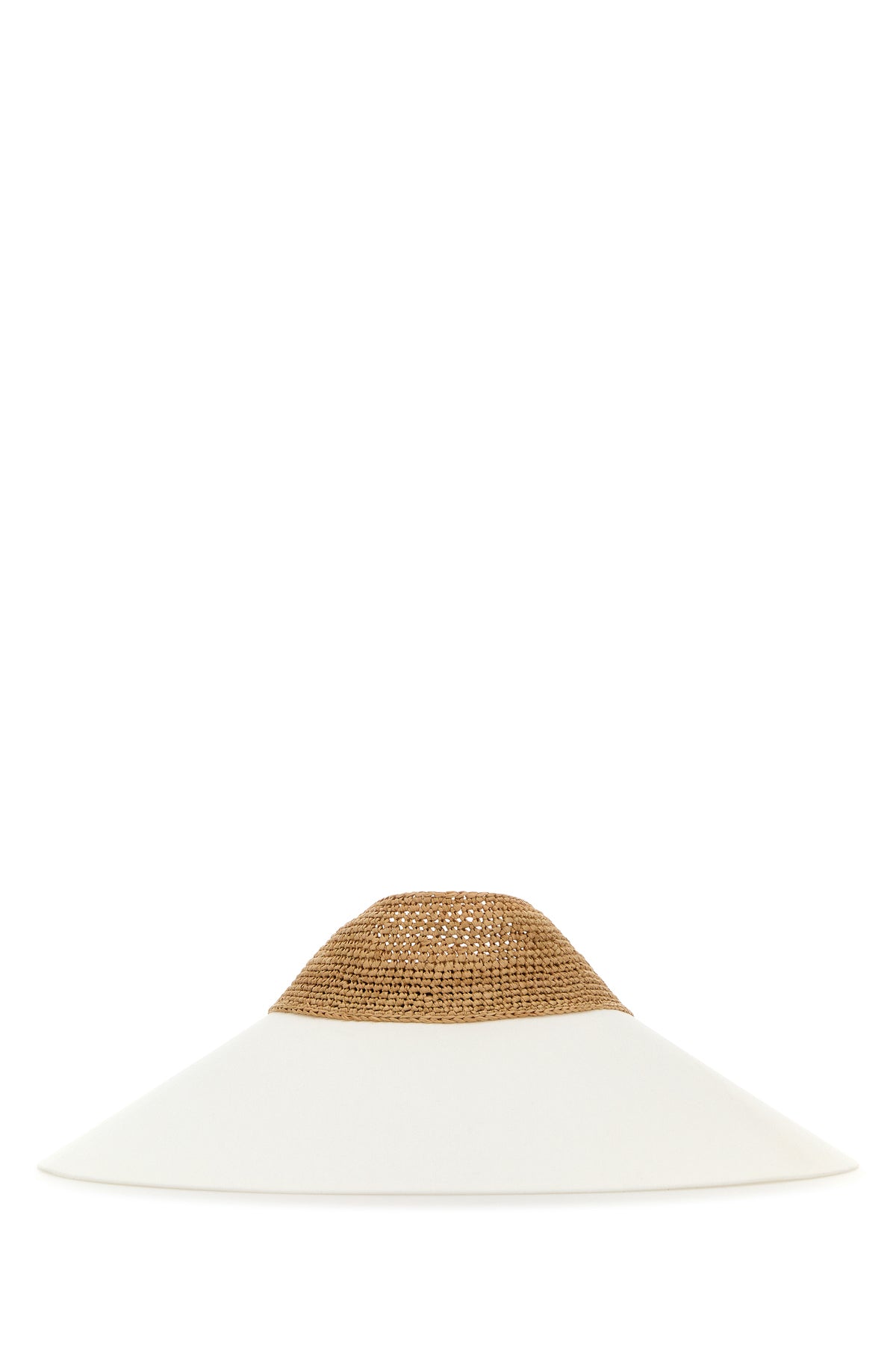Hat realized in raffia and cotton enriched by logoed metal detail on the side.