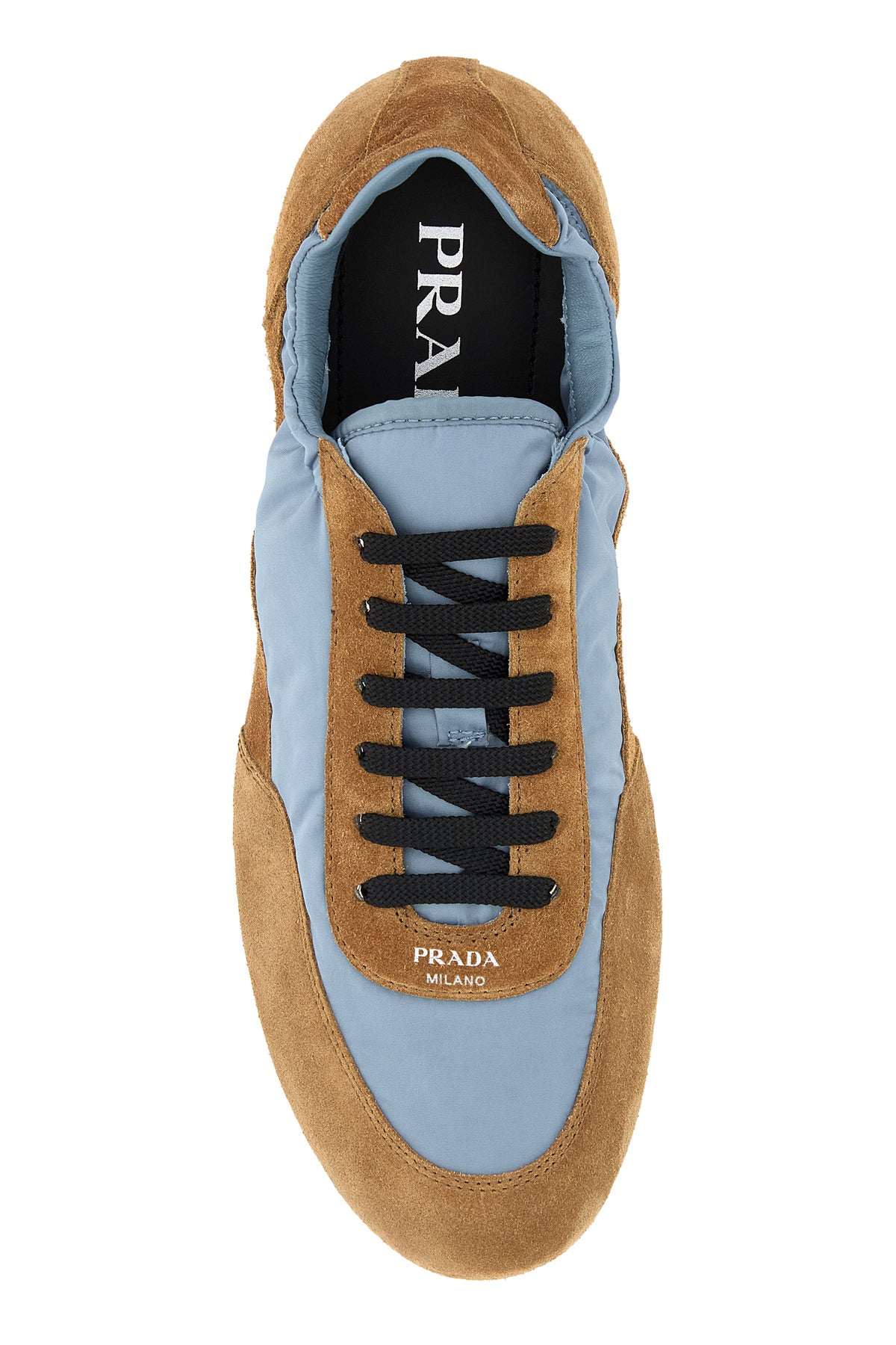 Sneakers realized in Re-Nylon and suede characterized by laminated printed logo on the instep.
