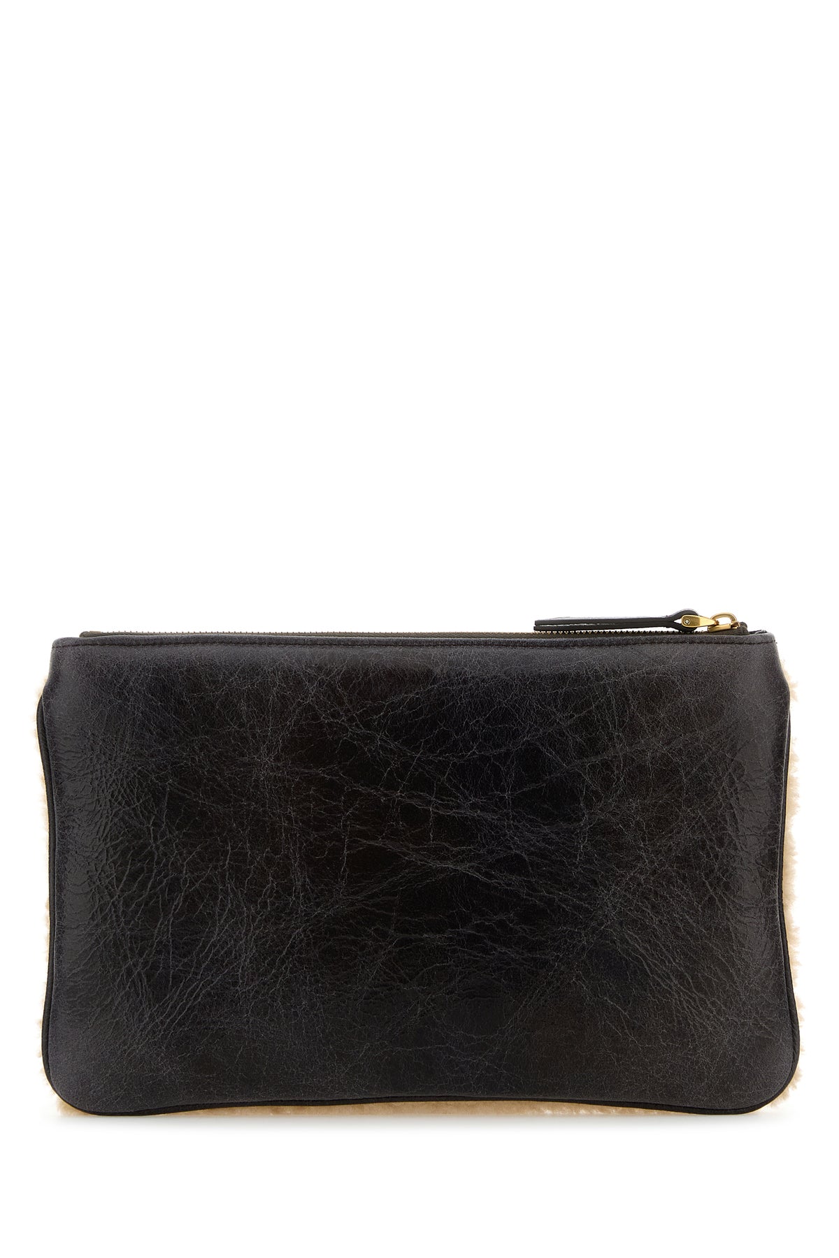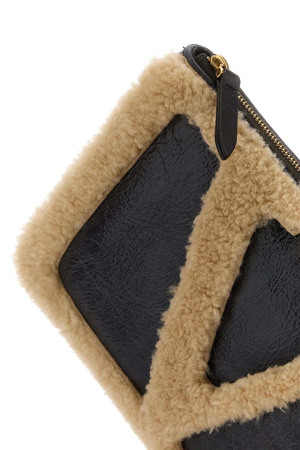 Clutch realized in shearling characterized by VLogo Signature motif at the front.