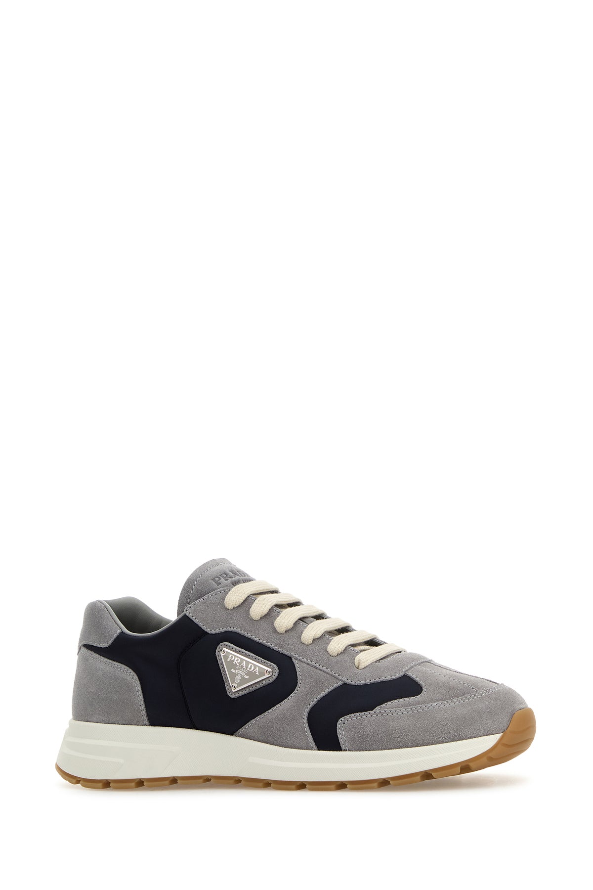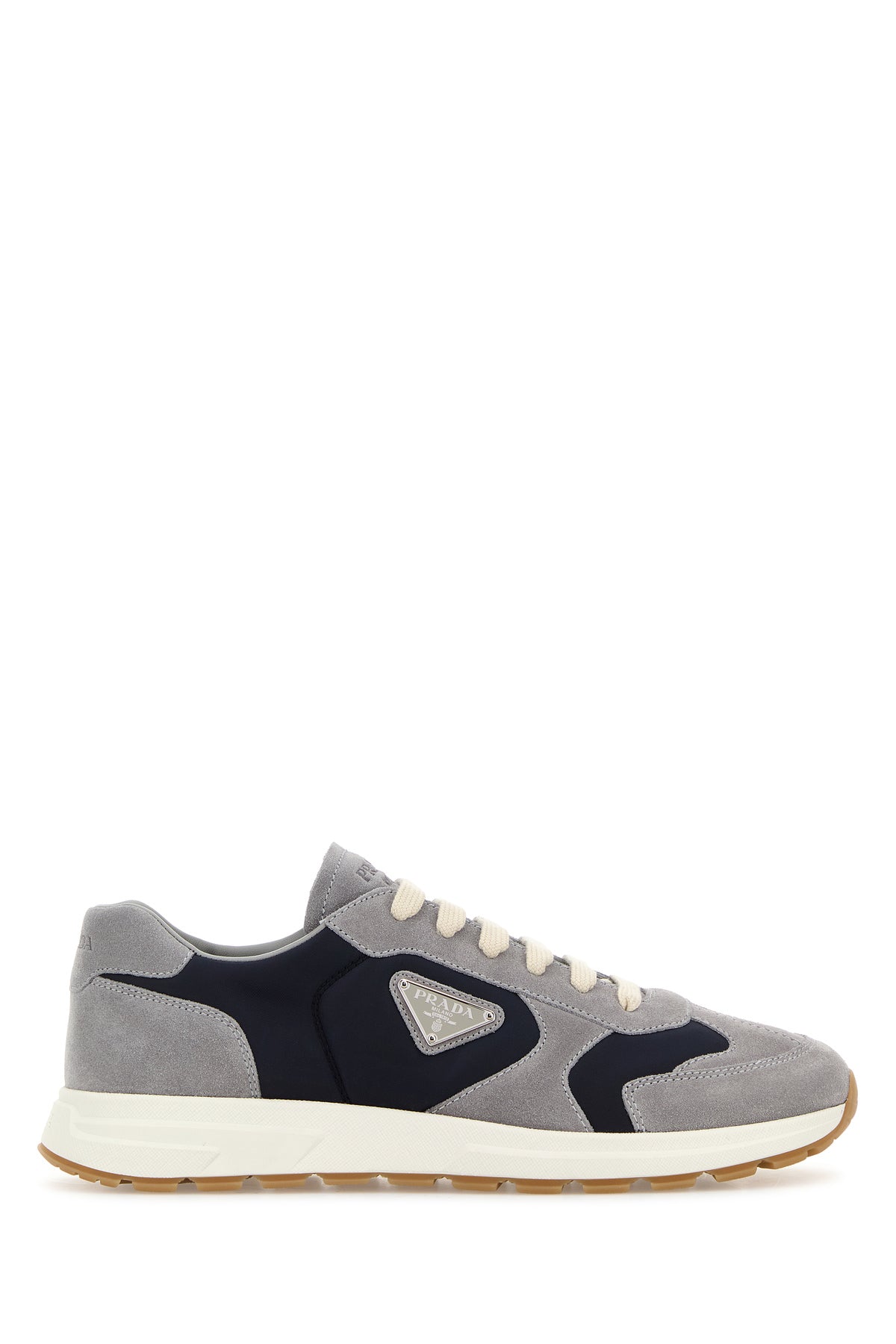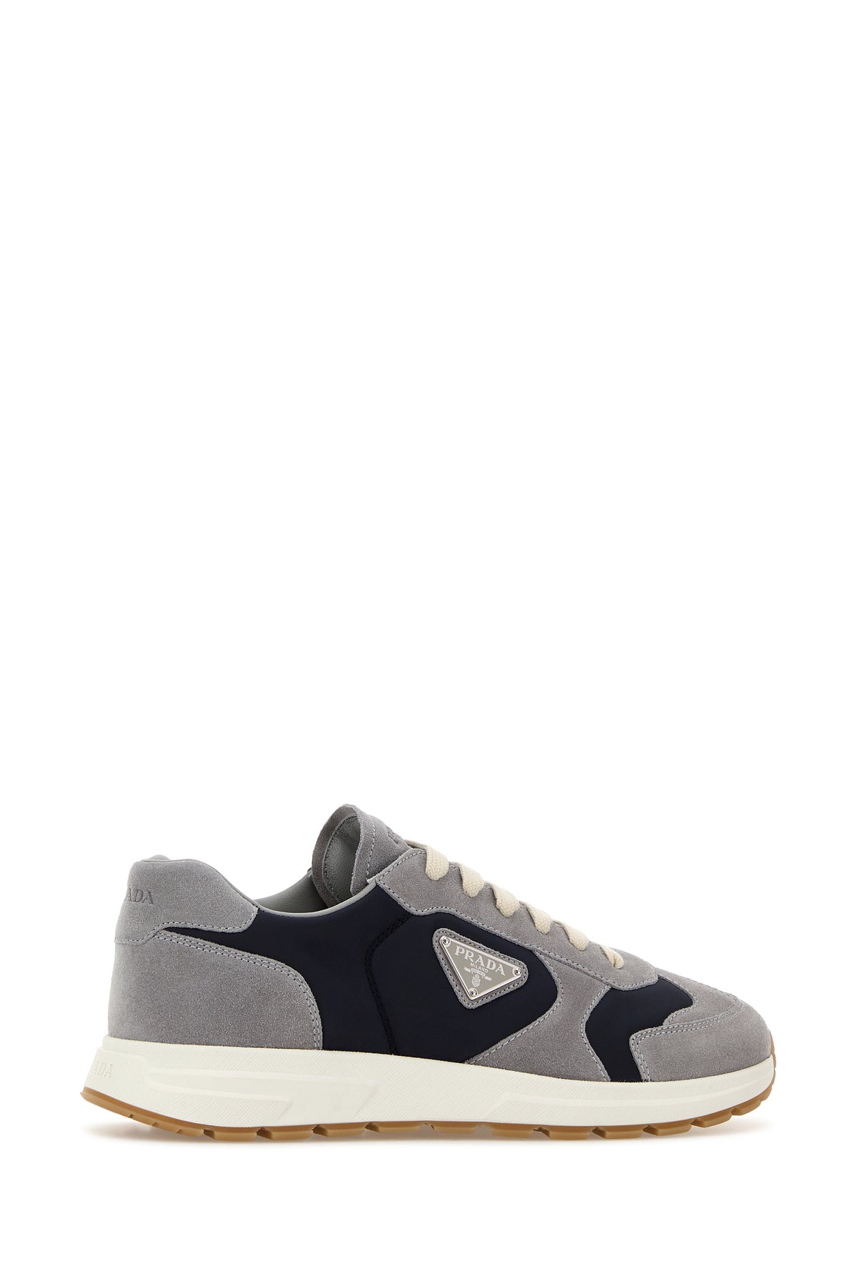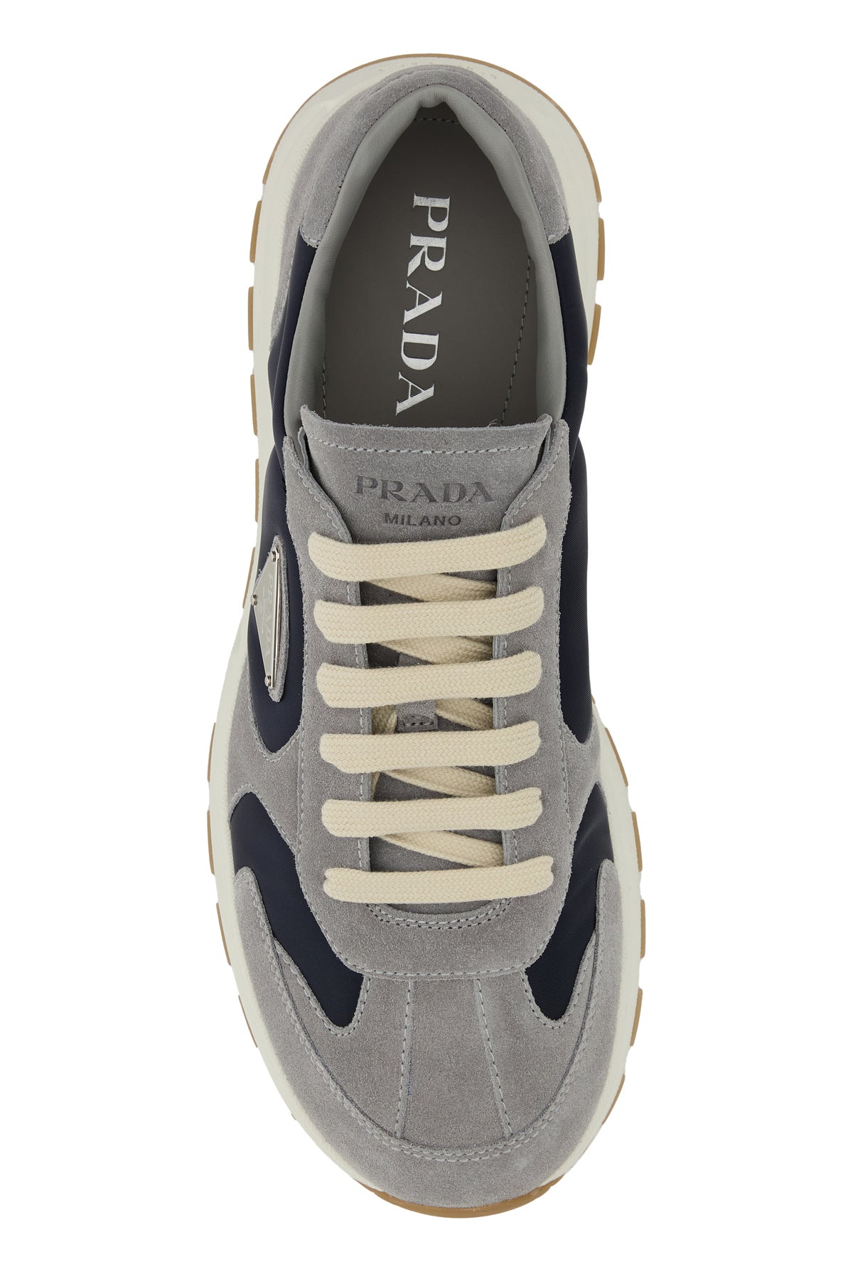 Sneakers realized in suede and Re-Nylon characterized by embossed logo on the heel enriched by iconic logoed metal triangle on the side.