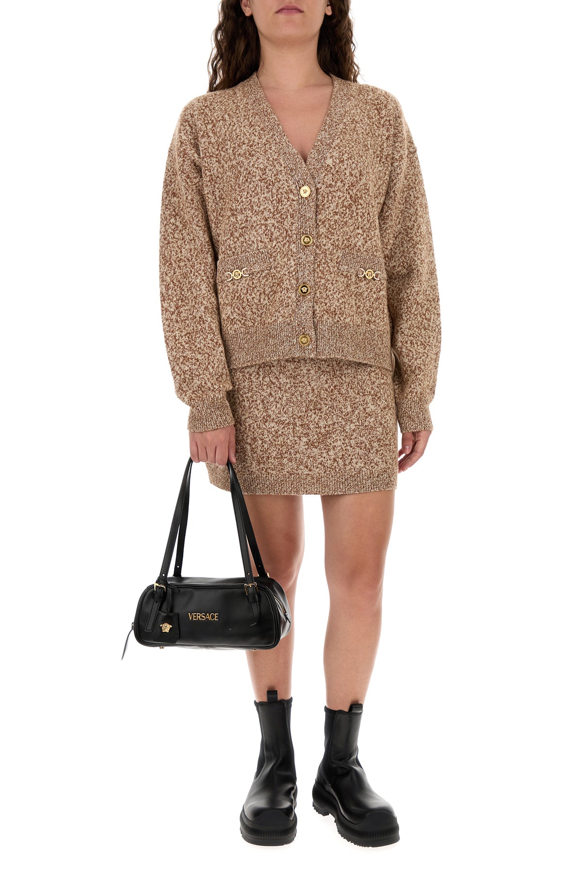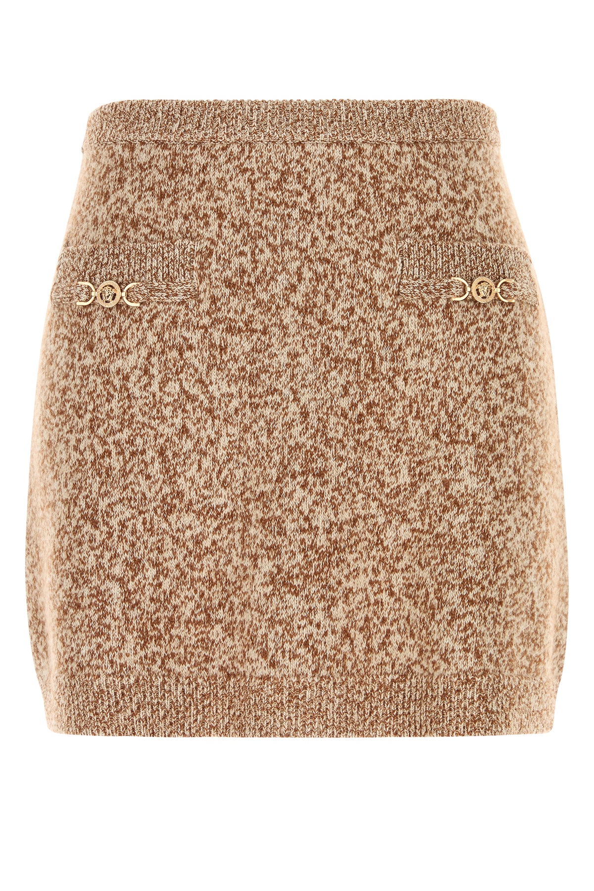 Mini skirt realized in virgin wool blend enriched by Medusa metal details at the front.