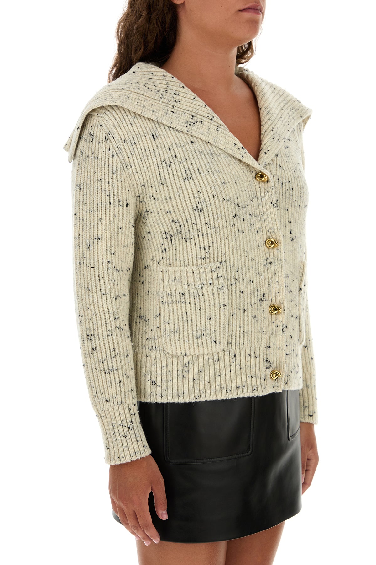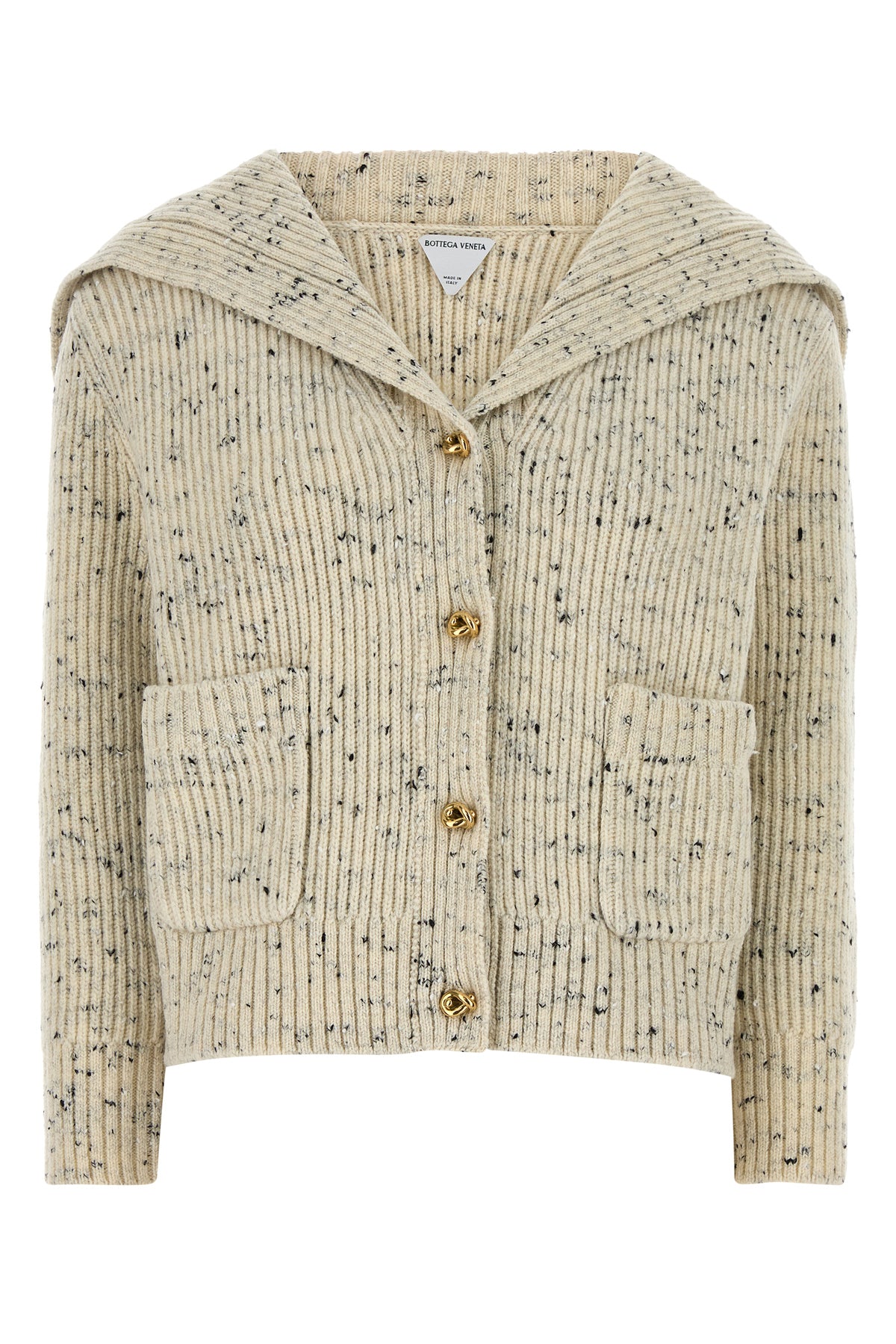 Cardigan realized in ribbed wool blend characterized by metal Knot buttons closure.