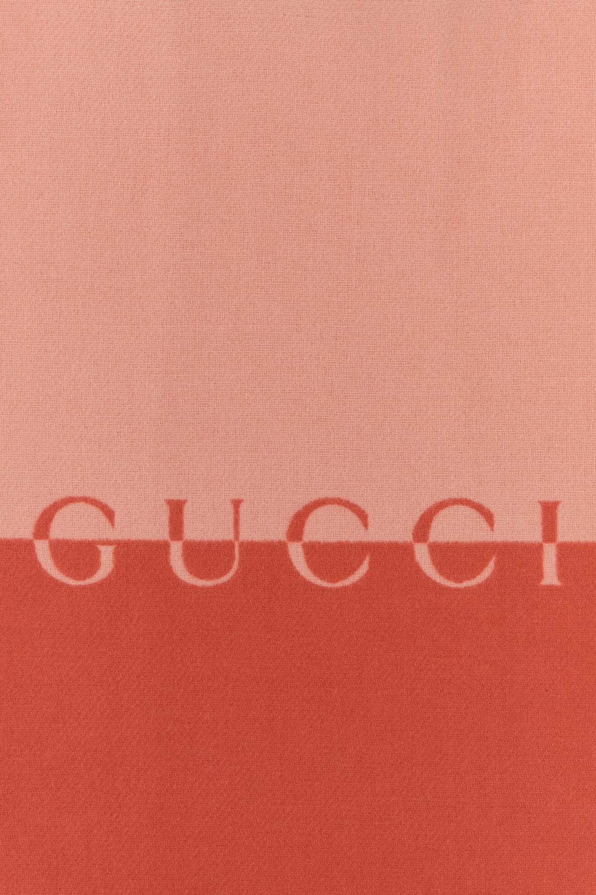Scarf realized in wool and cashmere charactered by Logo Gucci embroidery.