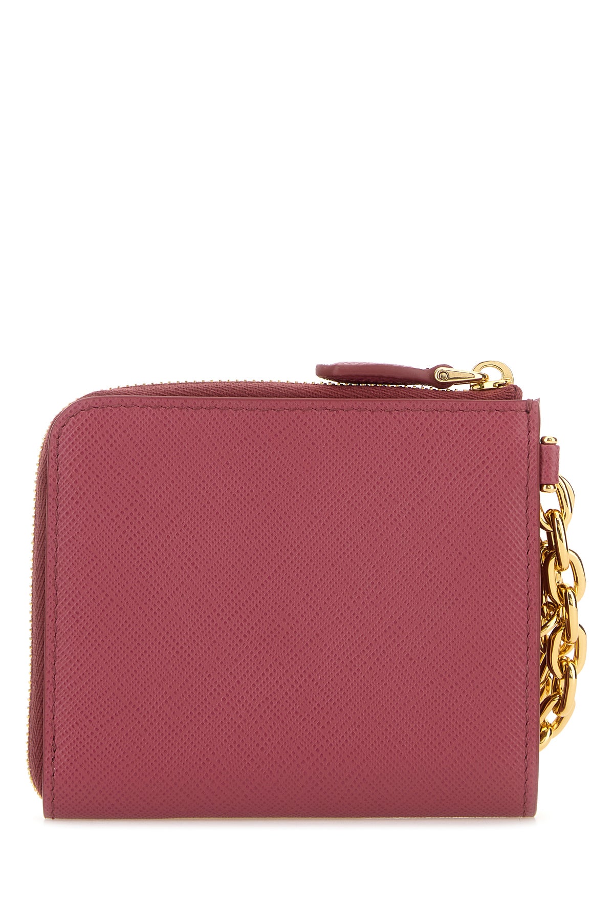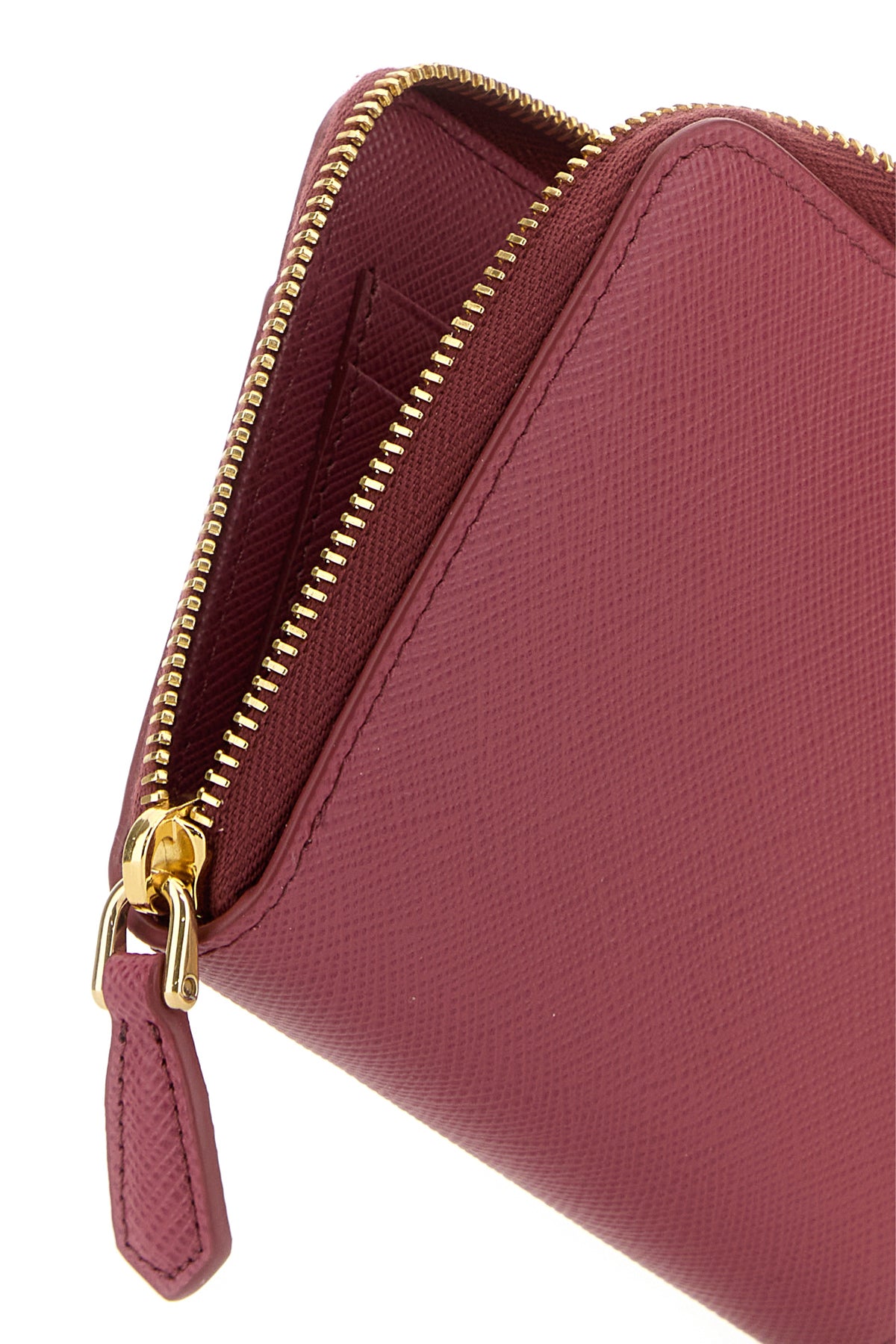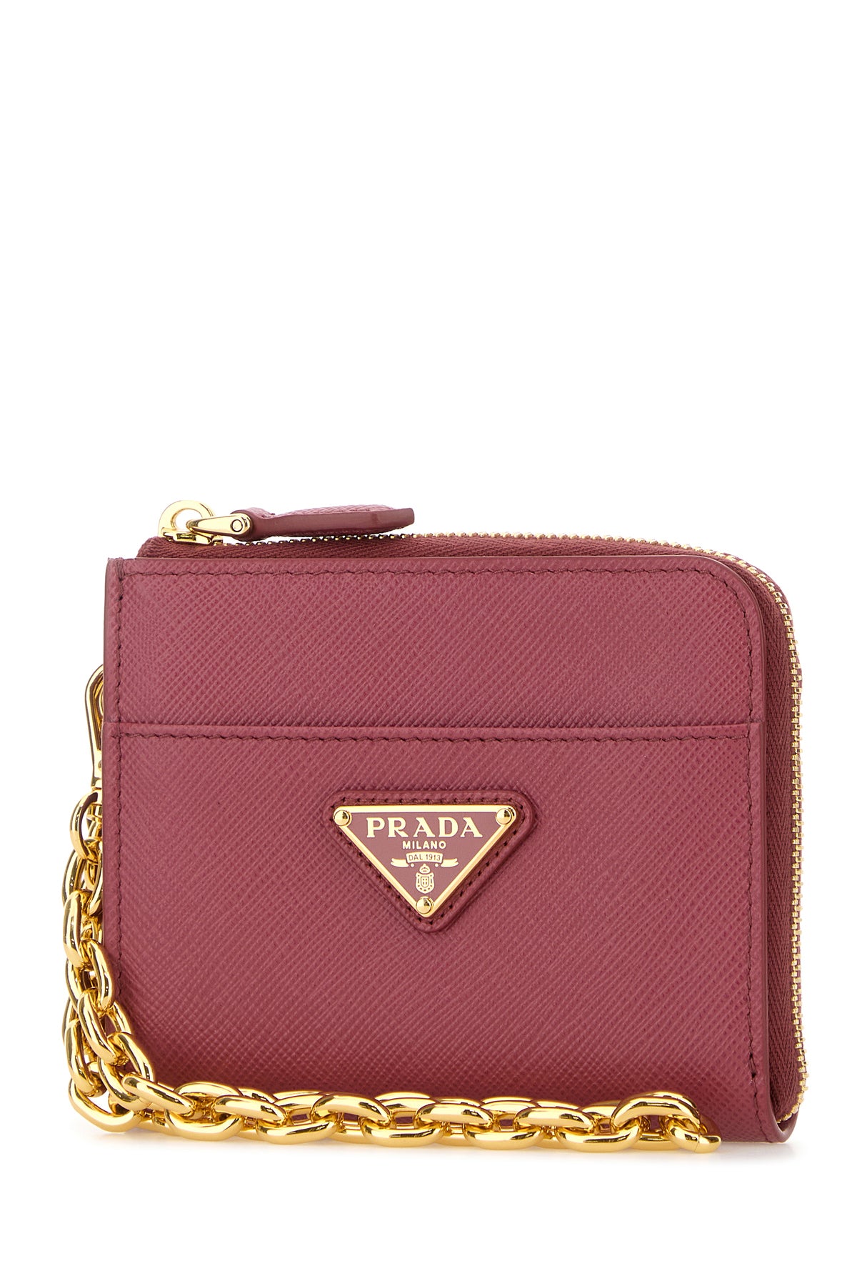 Wallet realized in Saffiano leather enriched by metal iconic logoed triangle at the front.