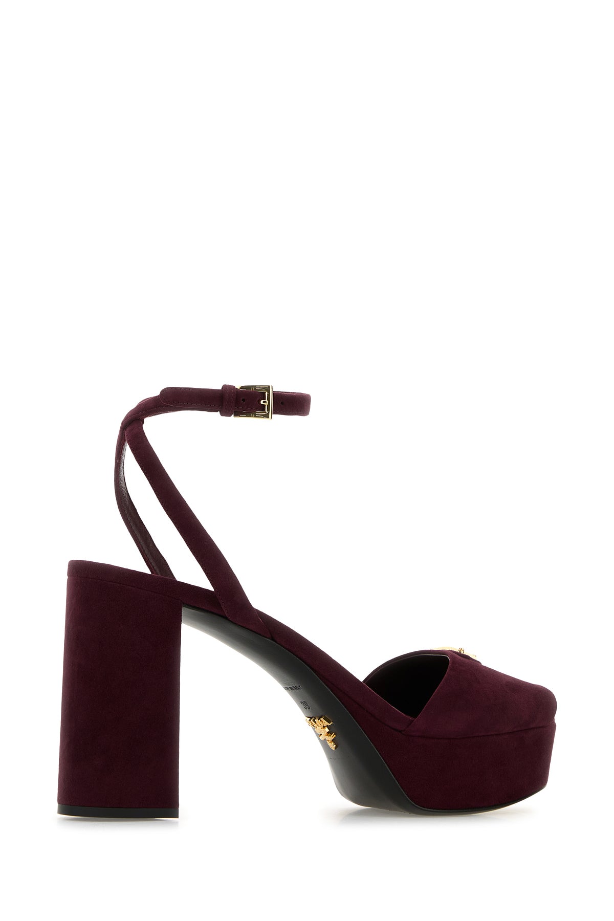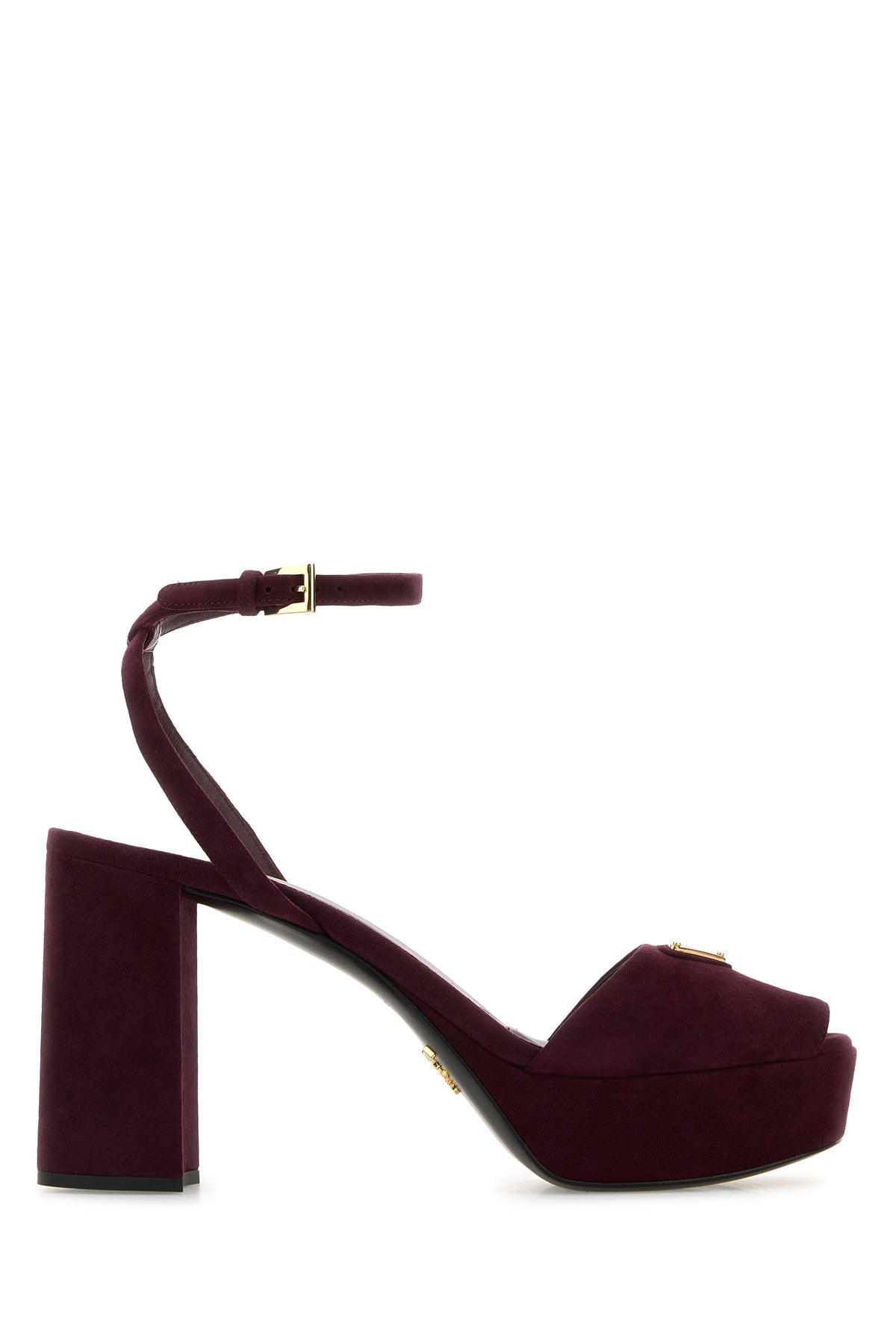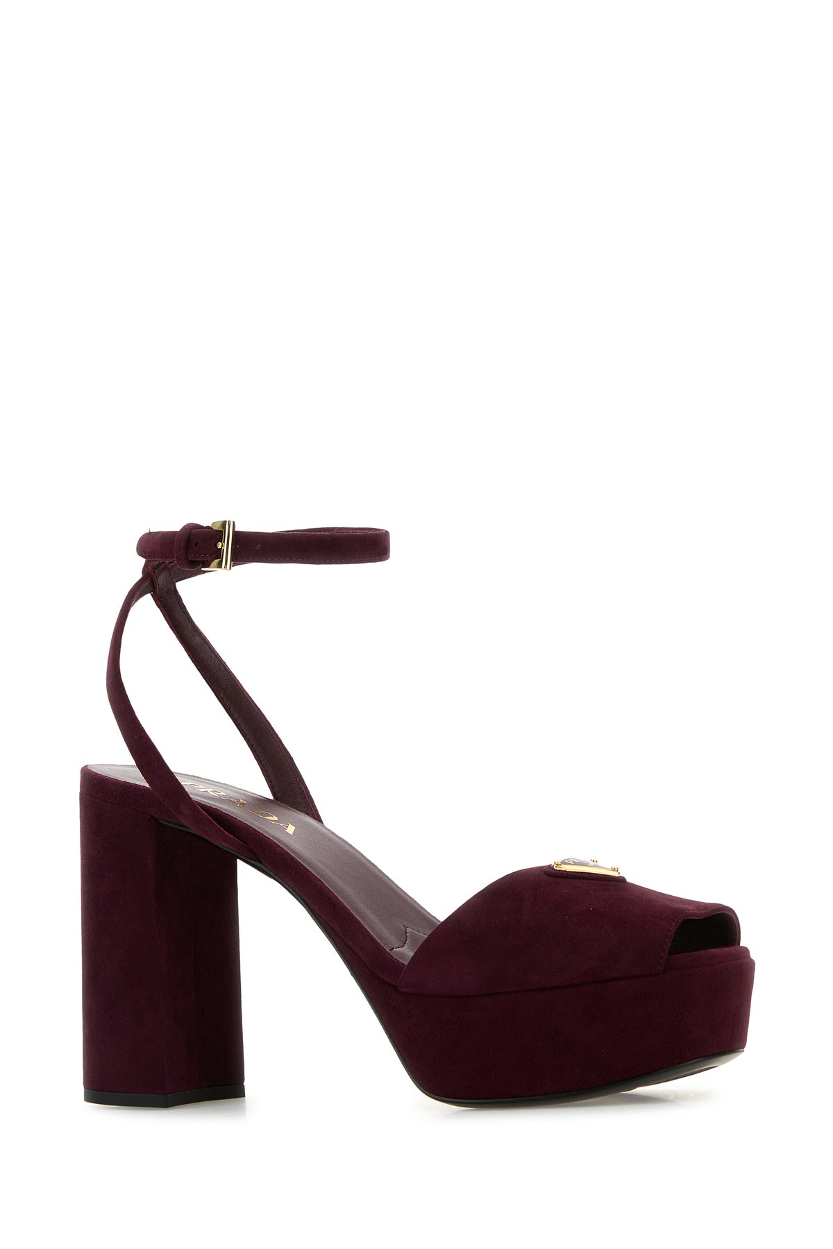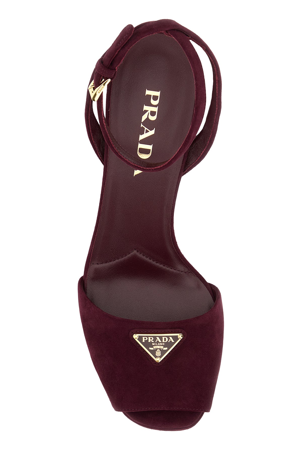 Sandals realized in suede enriched by iconic logoed metal triangle on the instep.