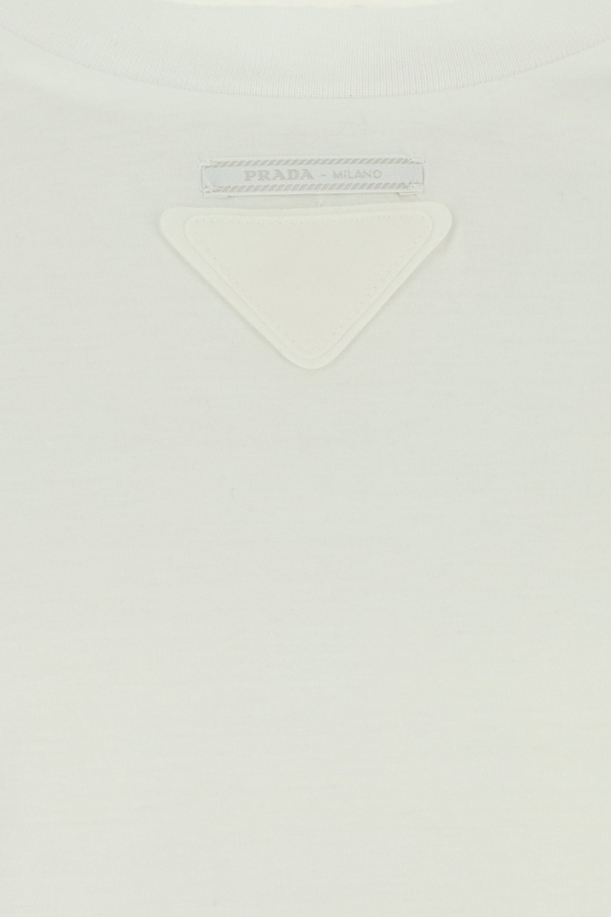 T-shirt realized in pure cotton enriched by iconic tonal fabric triangle on the chest.