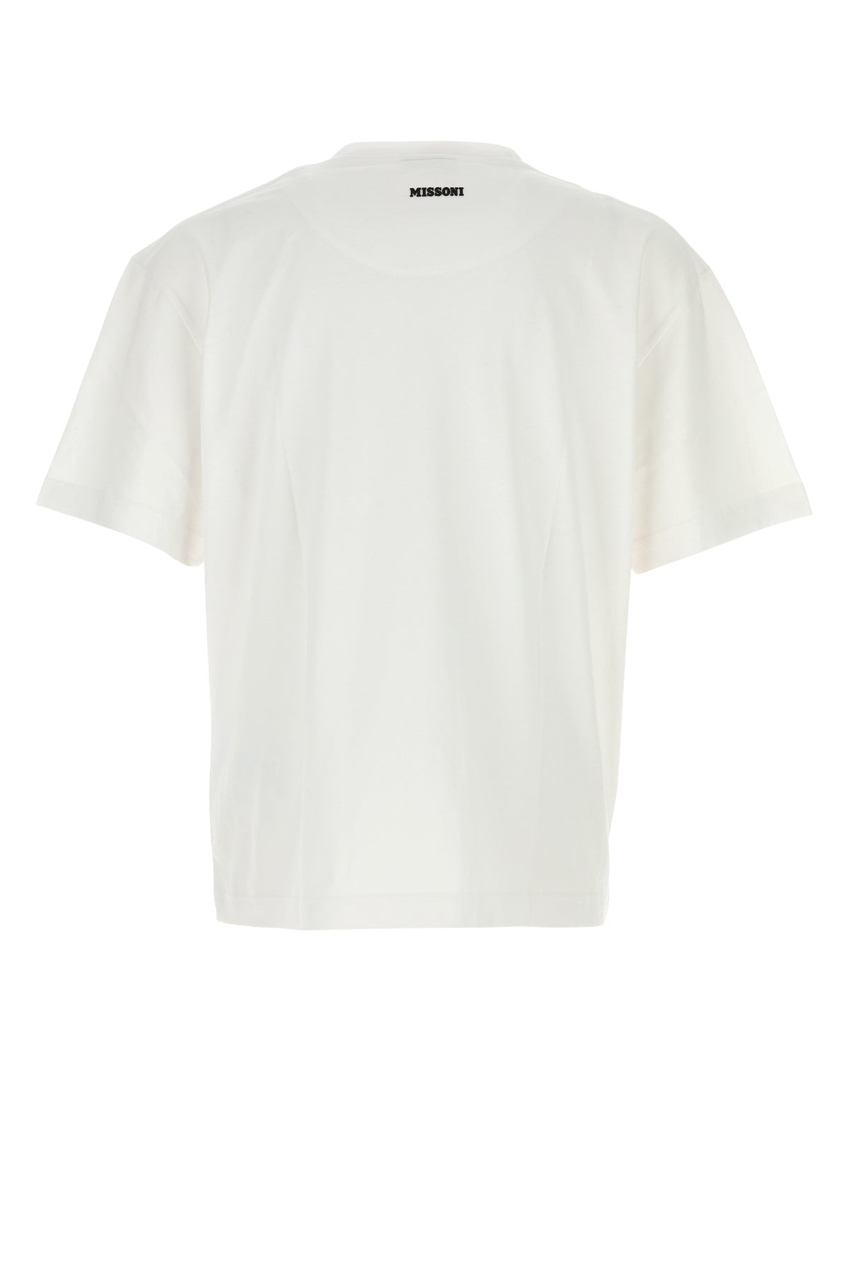 T-shirt realized in pure cotton characterized by rubbered logoed print at the back enriched by geometric patch at the front.
