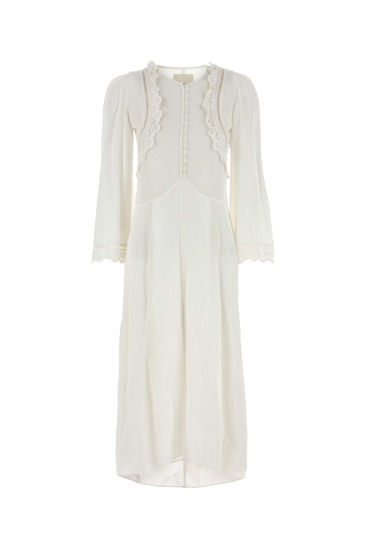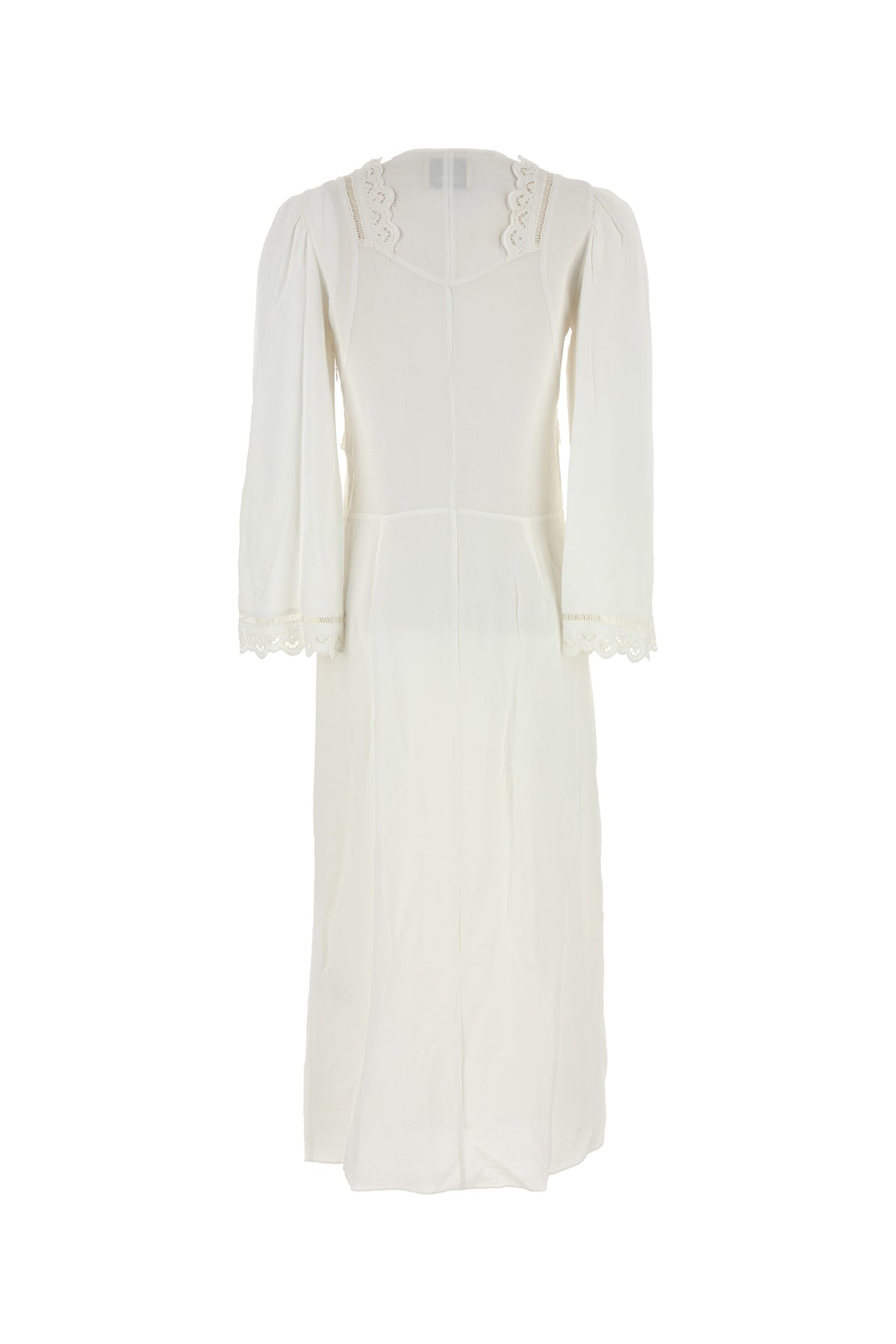 Long-cut dress realized in viscose crepe enriched by tonal lace inserts at the top and on the cuffs.