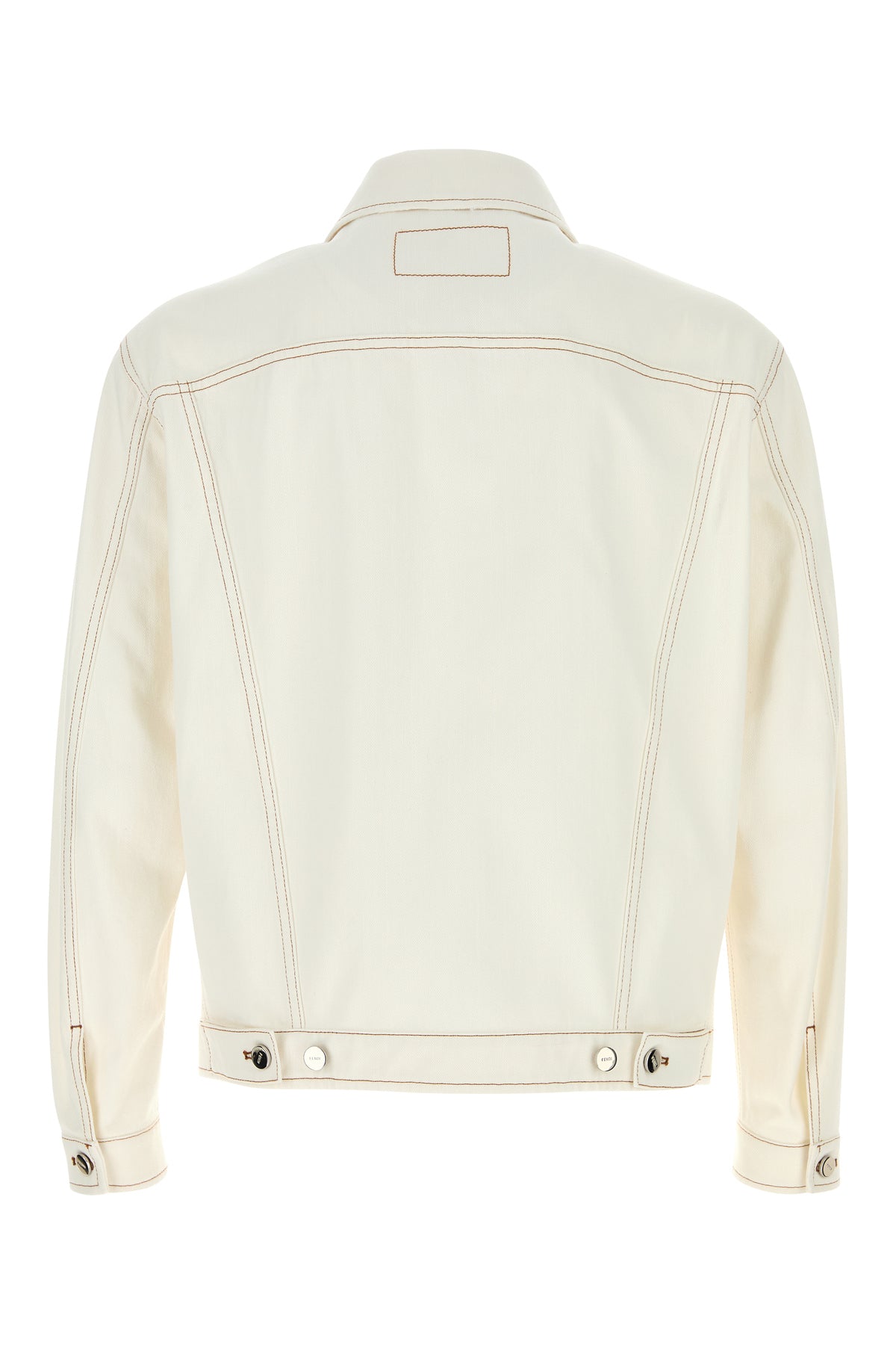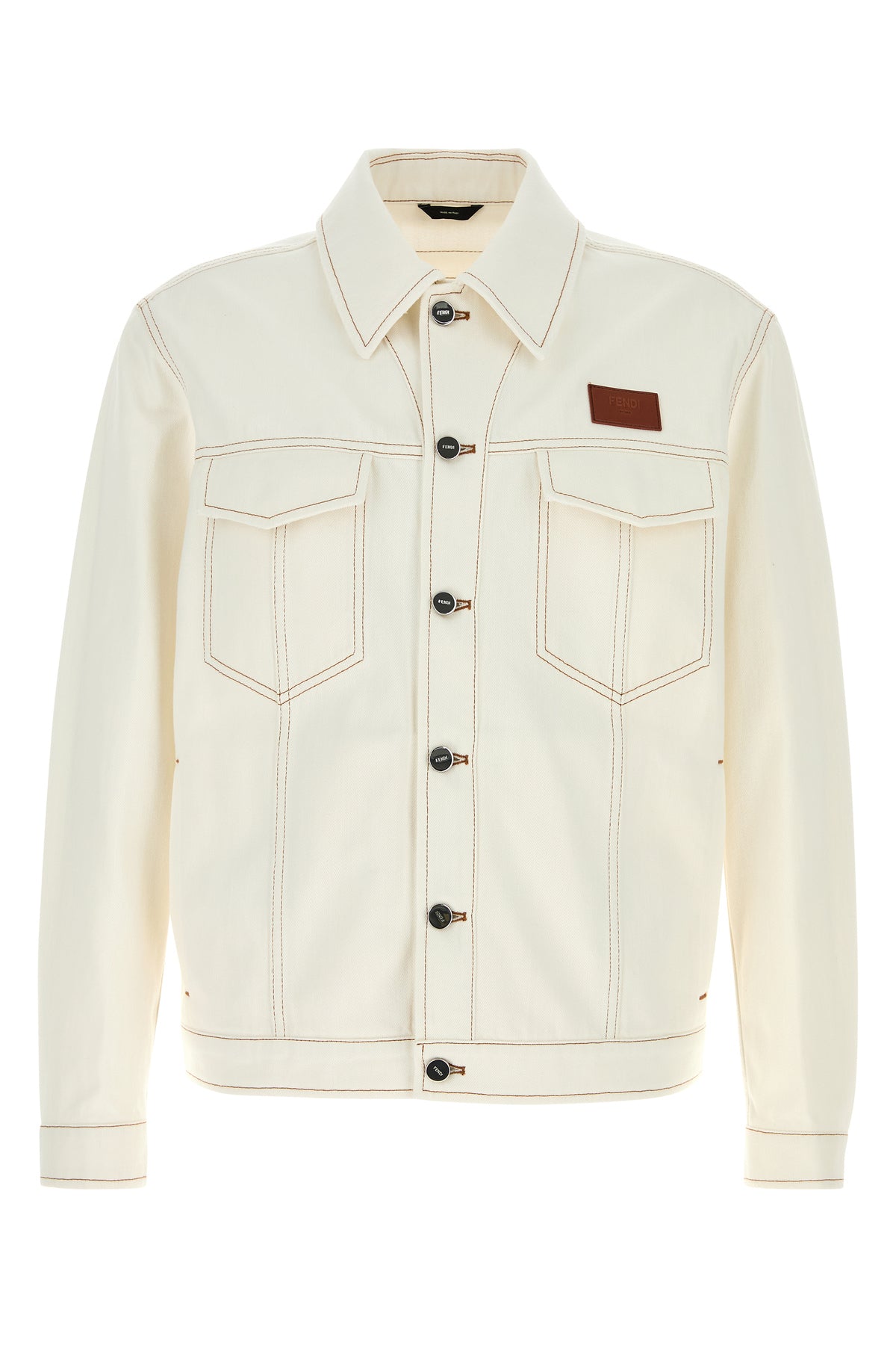 Jacket realized in pure cotton denim enriched by contrasting logoed label on the chest.