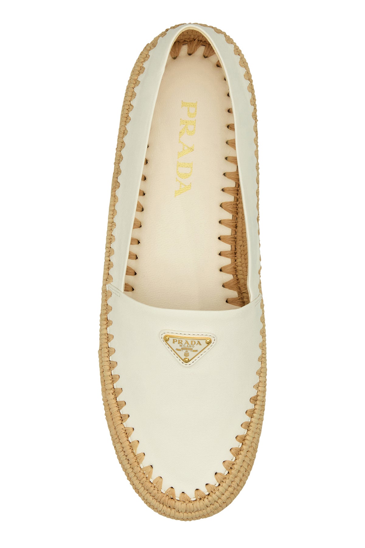 Espadrilles realized in pebble leather enriched by by iconic logoed metal triangle on the instep.