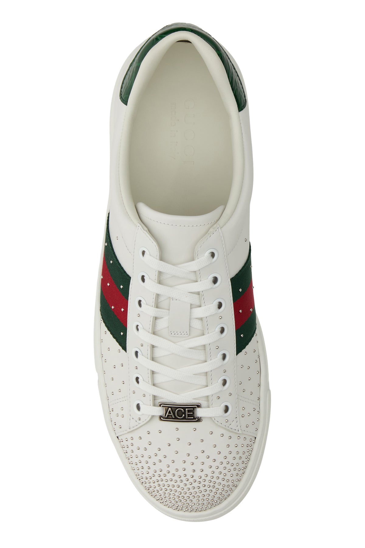 Sneakers realized in smooth leather characterized by printed logo on the contrasting heel enriched by Web patch on the sides and metal studs on the toe.