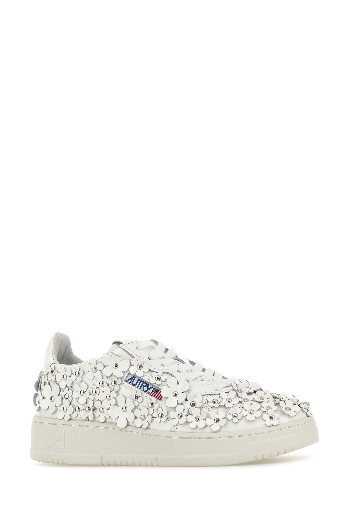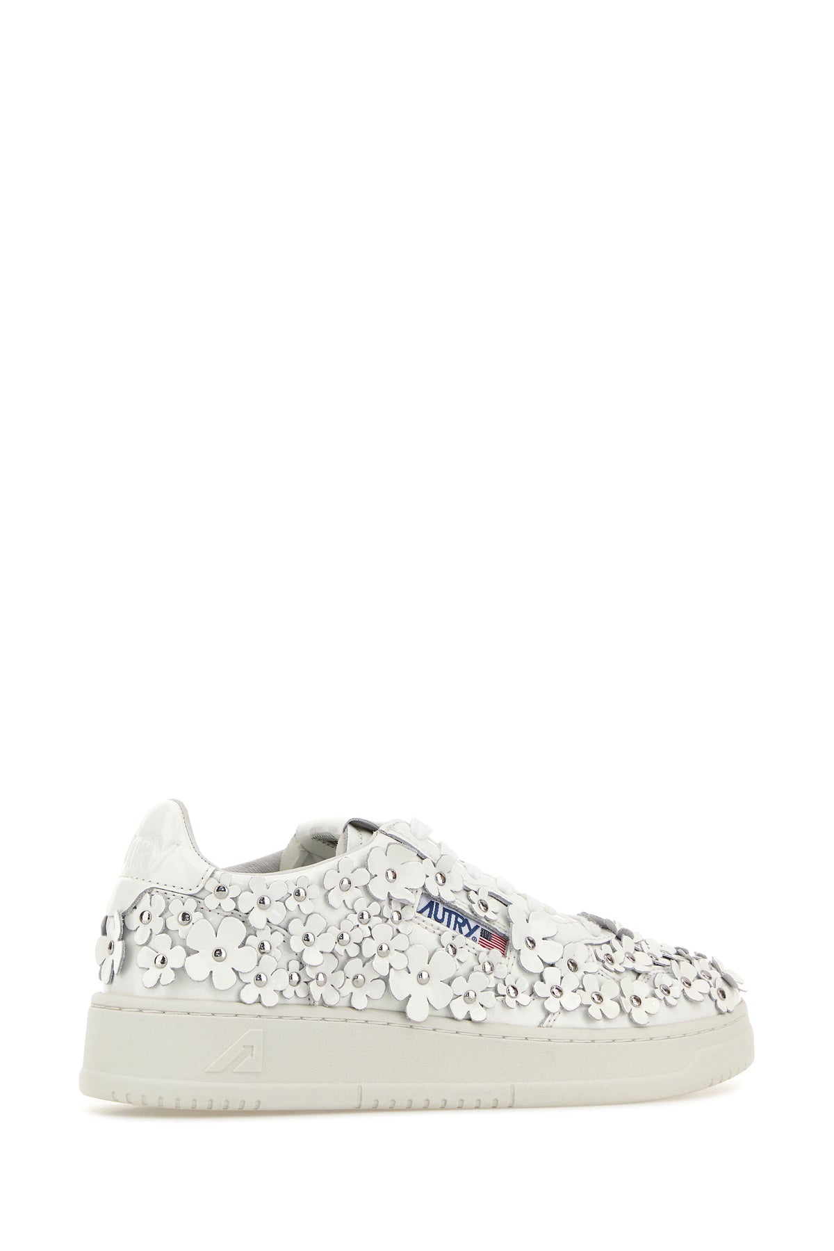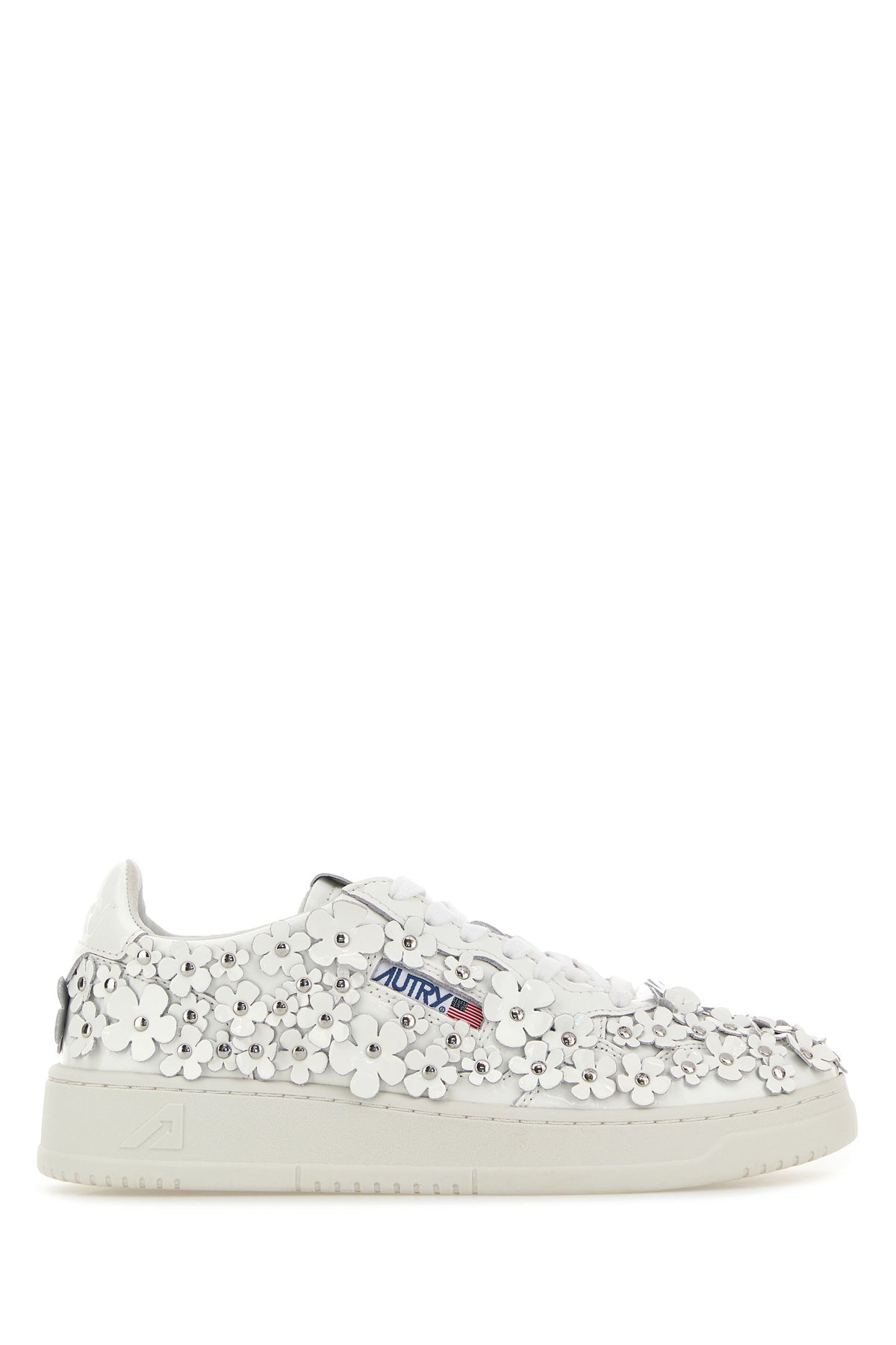 Sneakers realized in leather characterized by embossed logo on the heel enriched by floral patches on the entire surface and logoed label on the side.