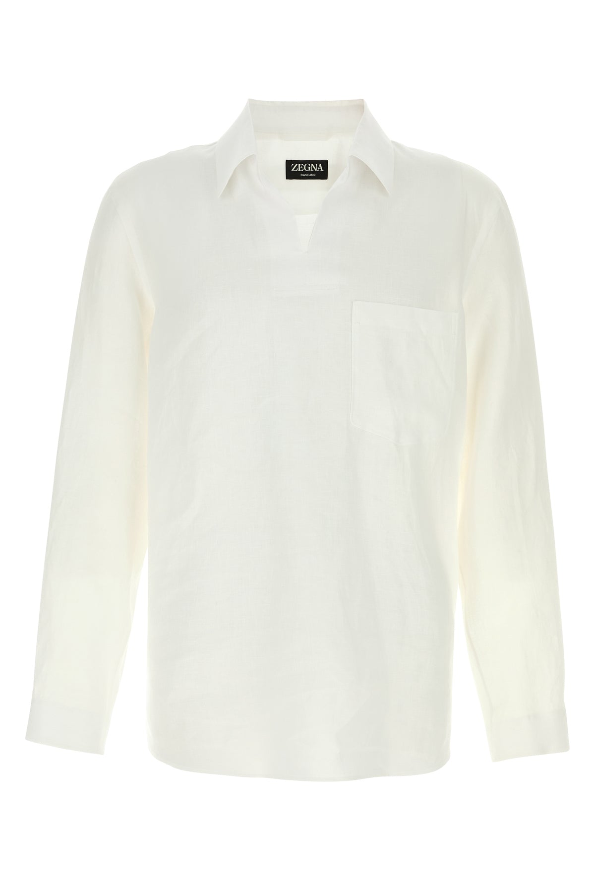 Long-sleeves polo shirt realized in pure linen characterized by V neckline.