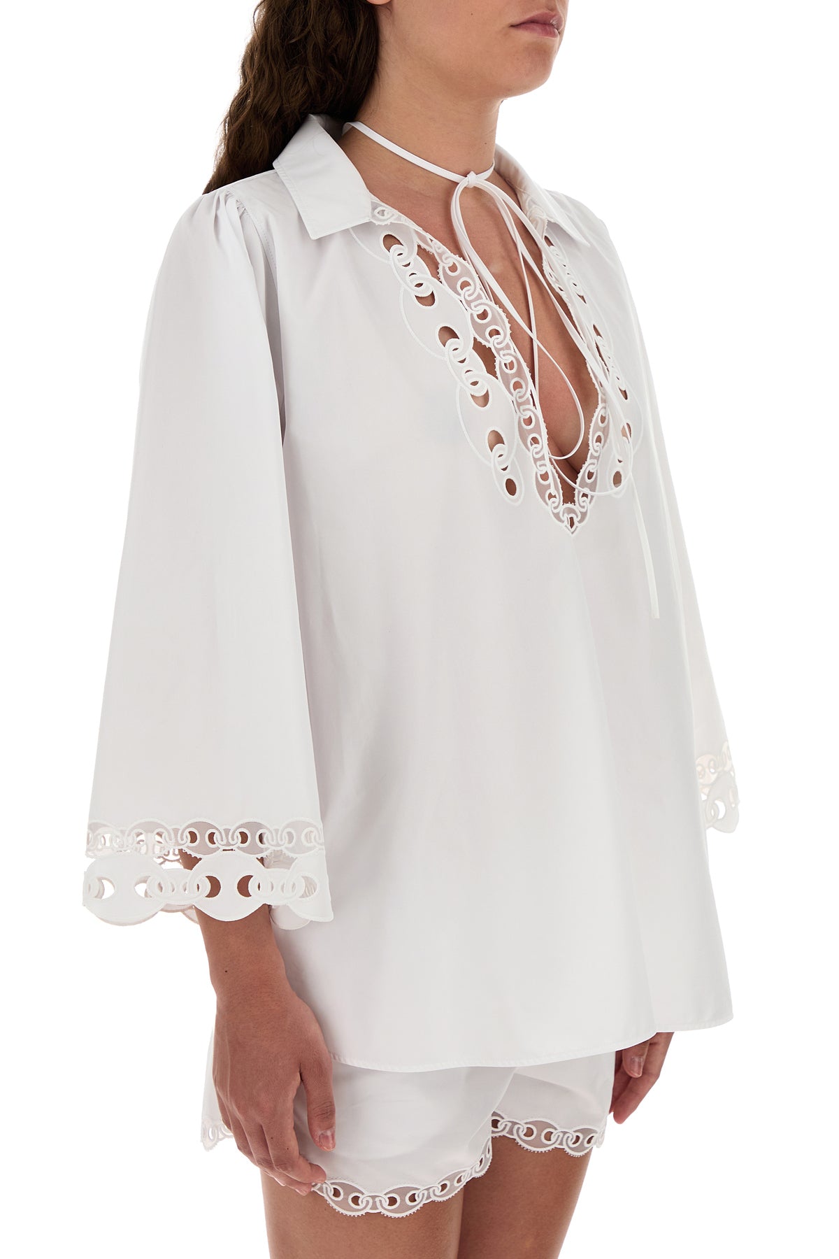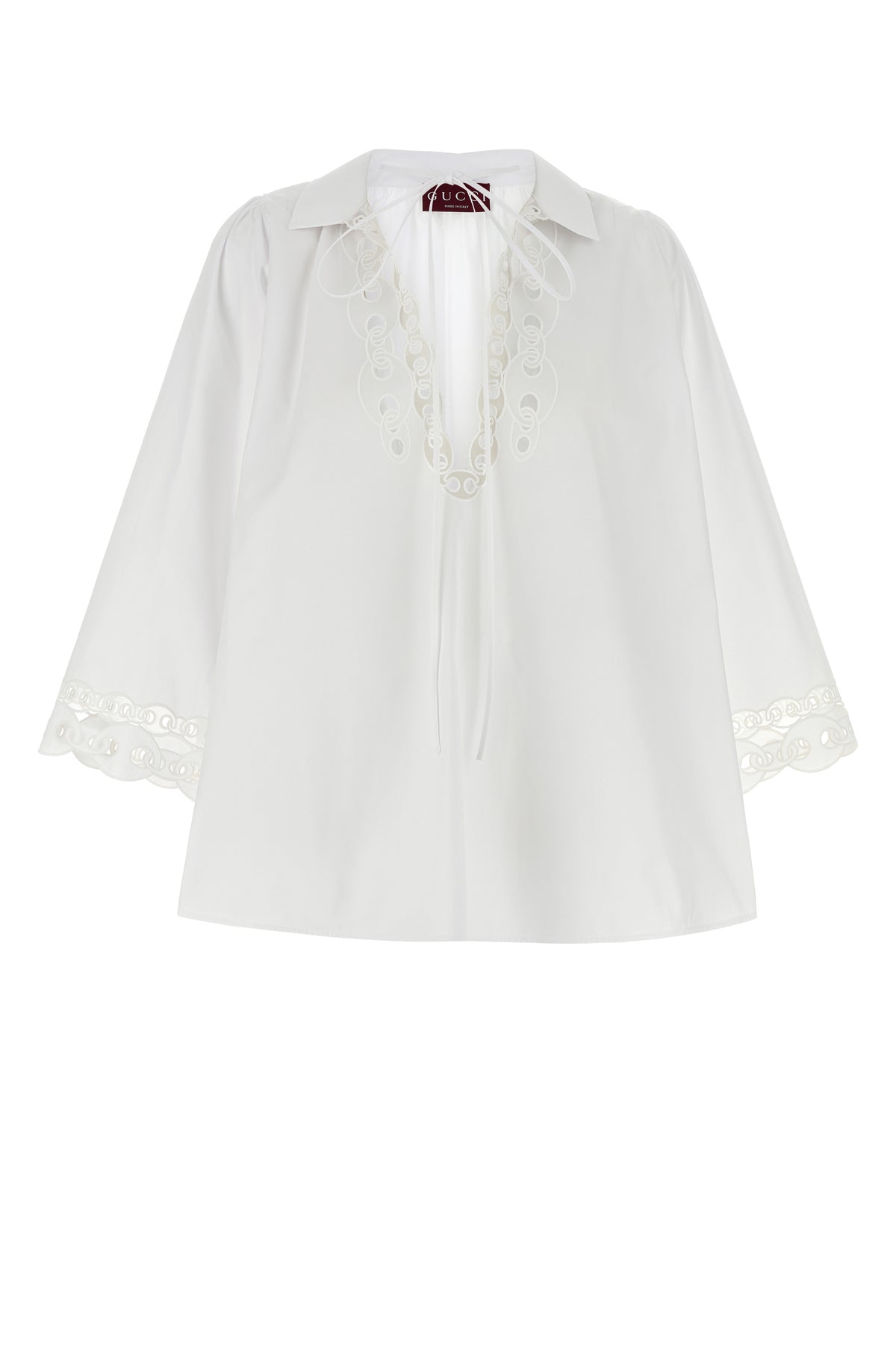 Blouse realized in pure cotton poplin enriched by cut-out Gucci Marina Chain inserts on the neckline and on the cuffs.