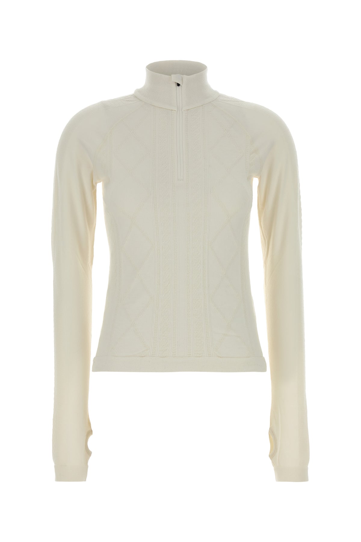 Long-sleeves t-shirt realized in stretch wool blend characterized by peculiar tonal embroidery on the entire surface.