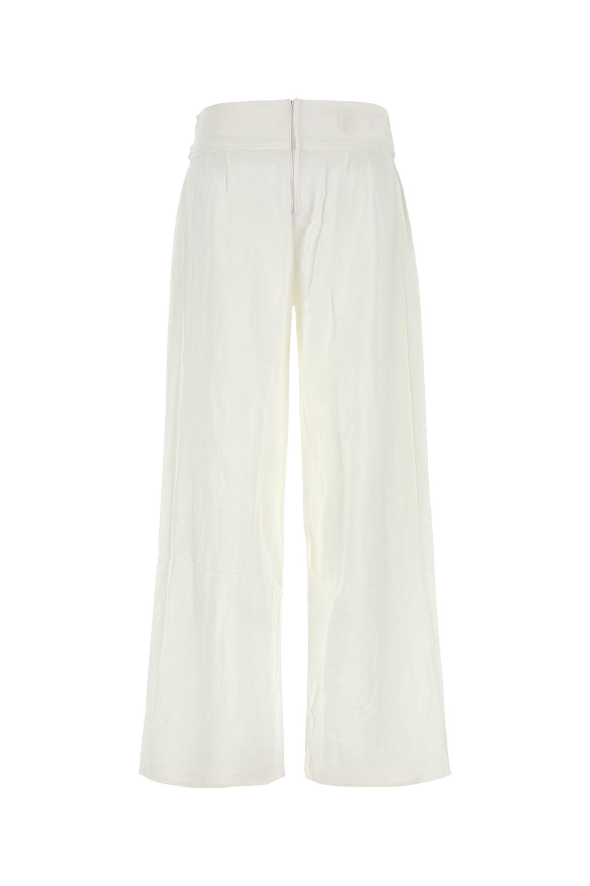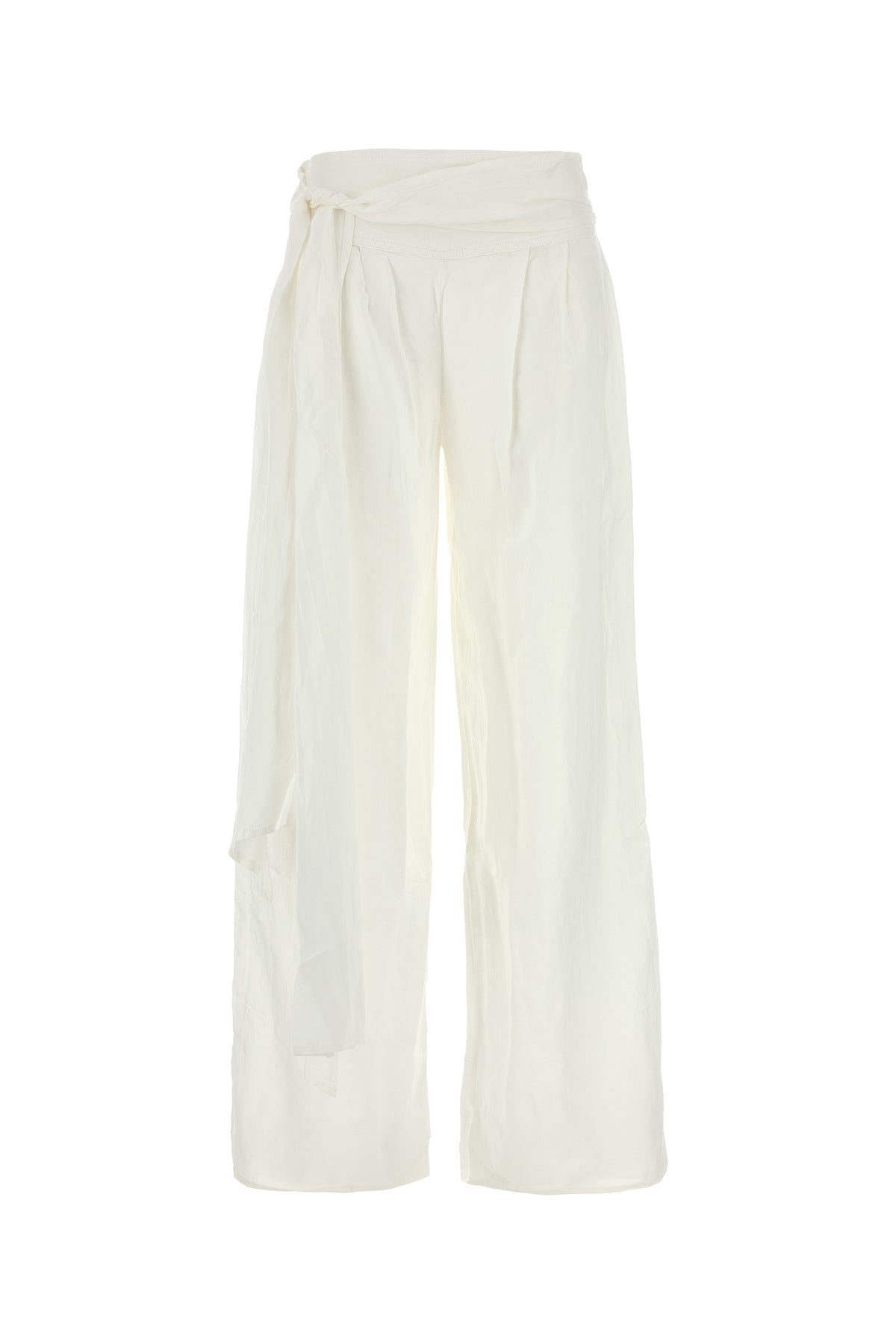 Wide-leg pant realized in viscose blend characterized by belt to tie at the waist.