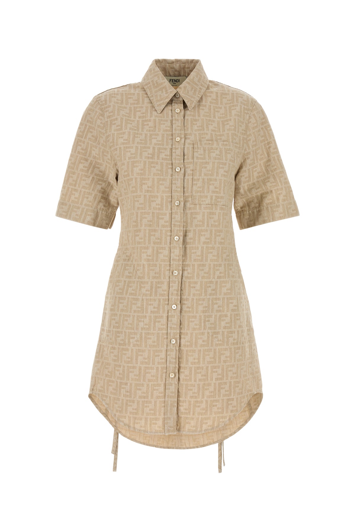 Abito chemisier realizzato in chambray di cotone e lino caratterizzato da stampa FF su tutta la superficie.