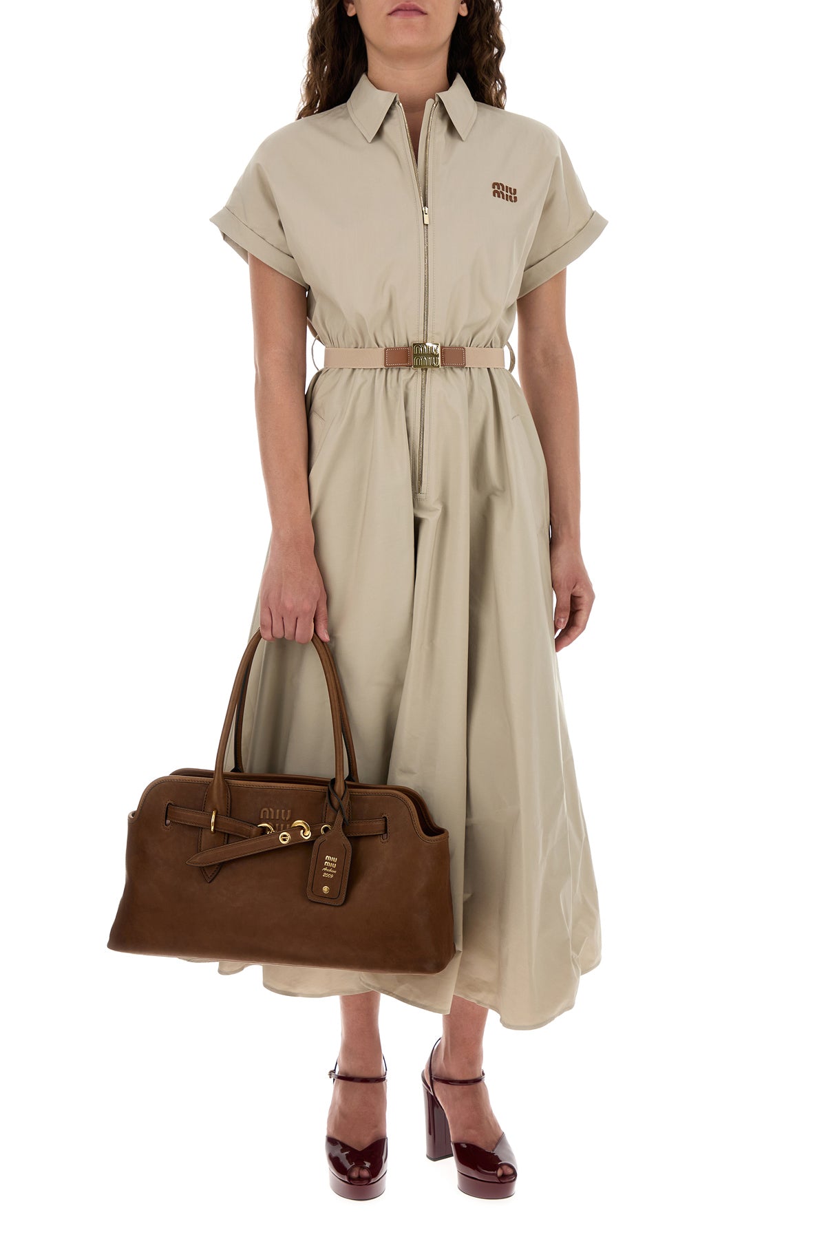 Abito chemisier in misto cotone cappuccino