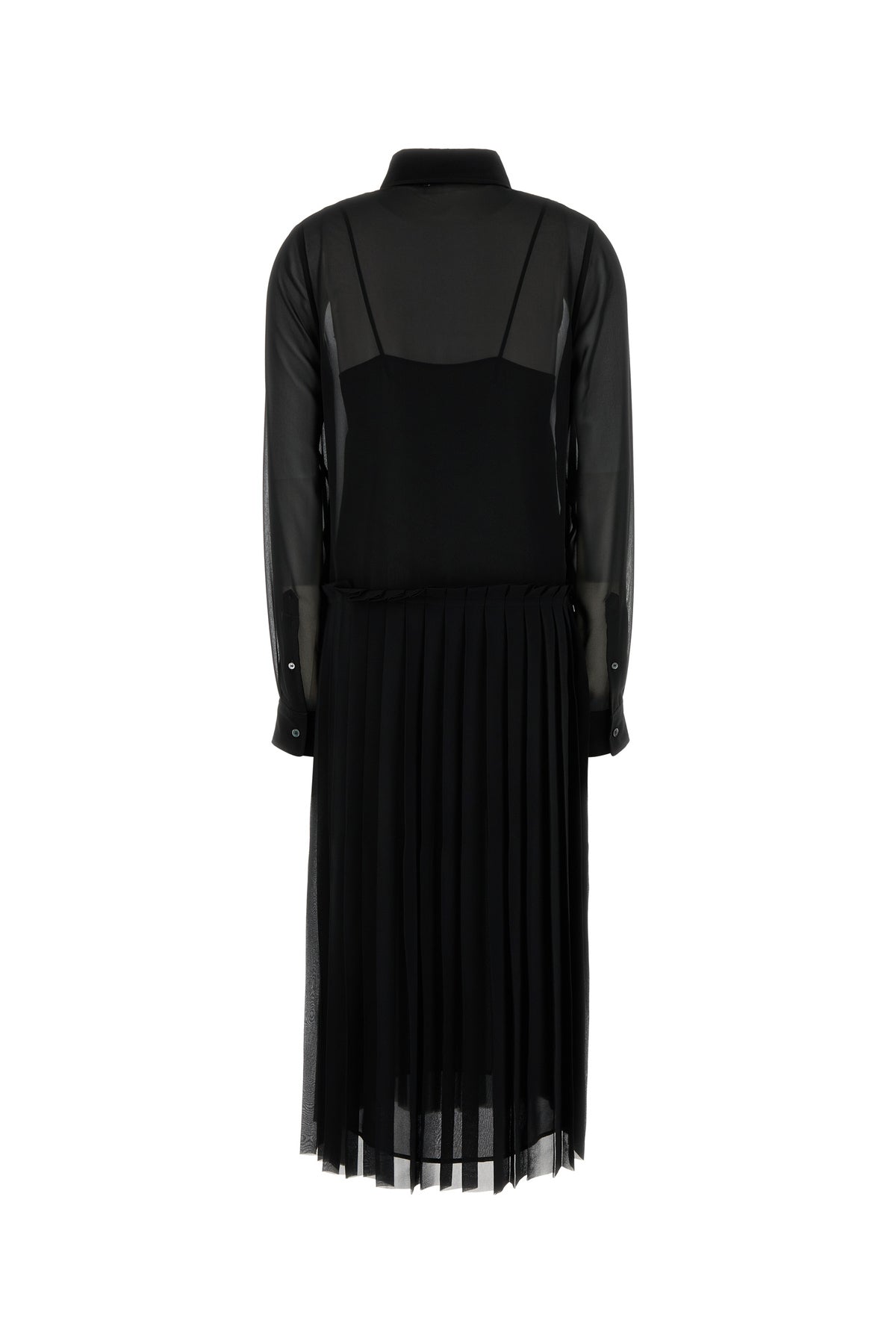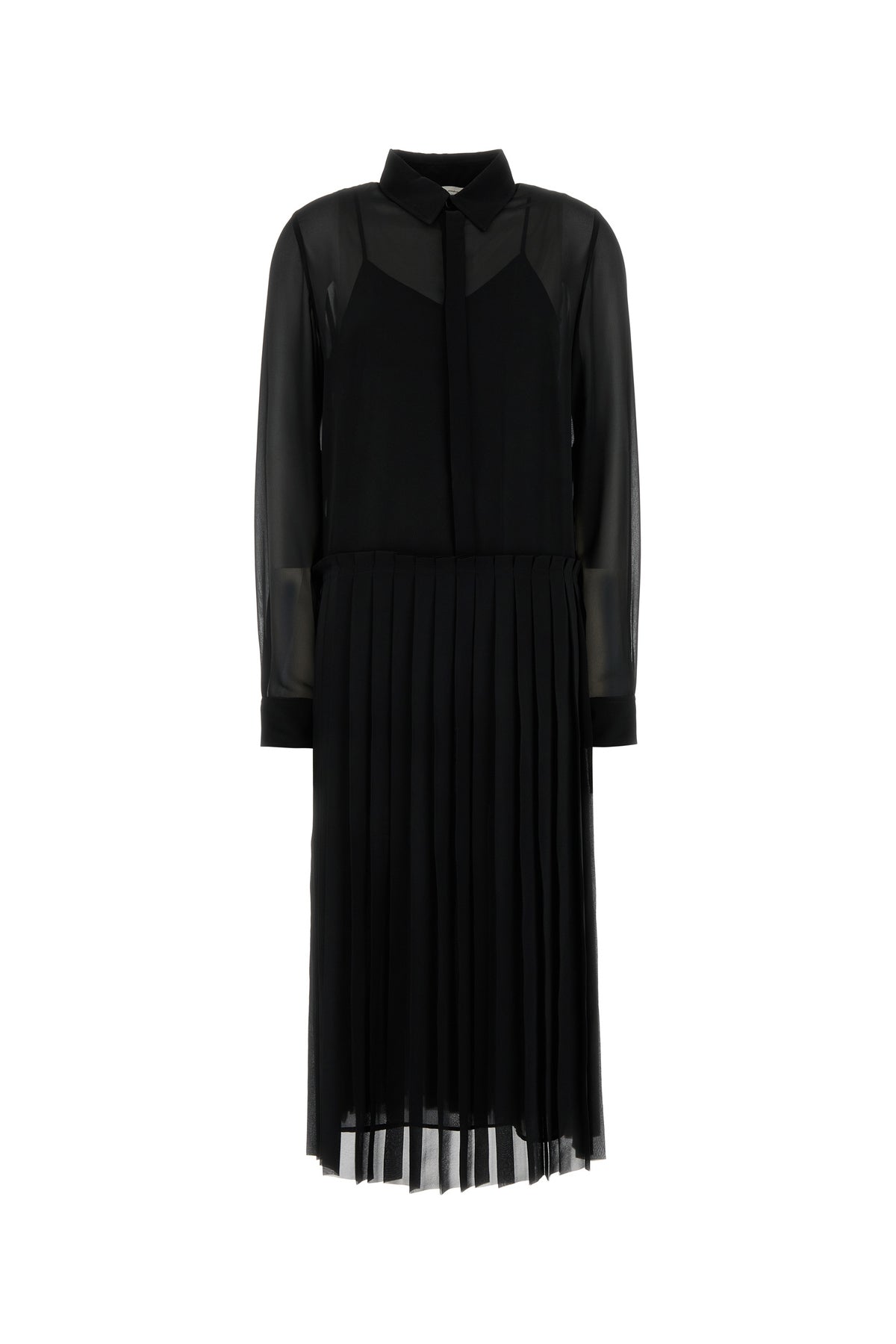 Abito chemisier realizzato in poliestere caratterizzato da gonna plissettata.